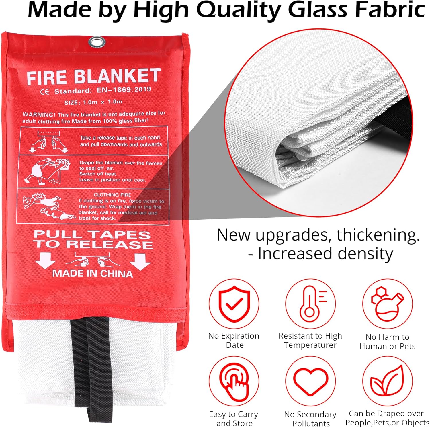 - ألياف زجاجية عالية الجودة: بطانية إطفاء الحريق مصنوعة من ألياف زجاجية عالية الجودة بنسبة 100%، والتي يمكنها حجب درجات حرارة تصل إلى 1000 درجة مئوية. لن تؤذي الألياف الزجاجية يديك عند استخدامها، ولكن يوصى بارتداء القفازات إذا كانت بشرتك حساسة. يبلغ مقاس بطانية إطفاء الحريق 39.33 × 39.33 انش عند فردها، عبوة صغيرة، سهلة التخزين.
