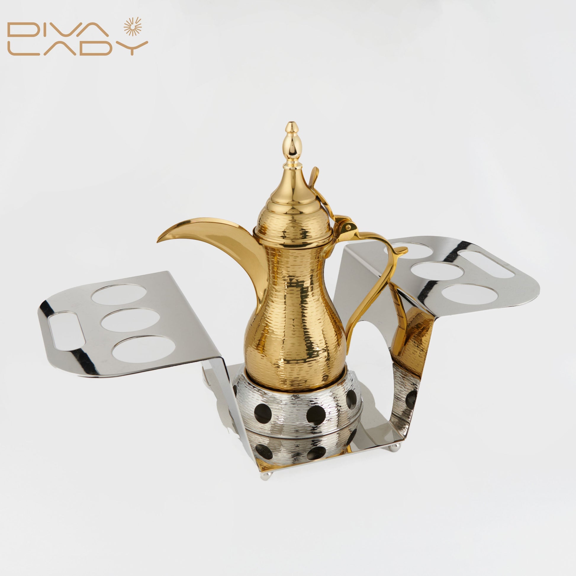 طقم دلة قهوة عربية مع حامل أكواب – تصميم فاخر بلون ذهبي وفضي