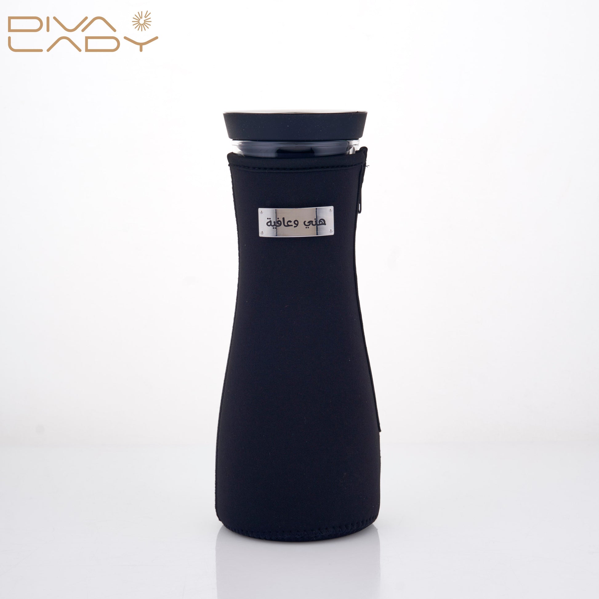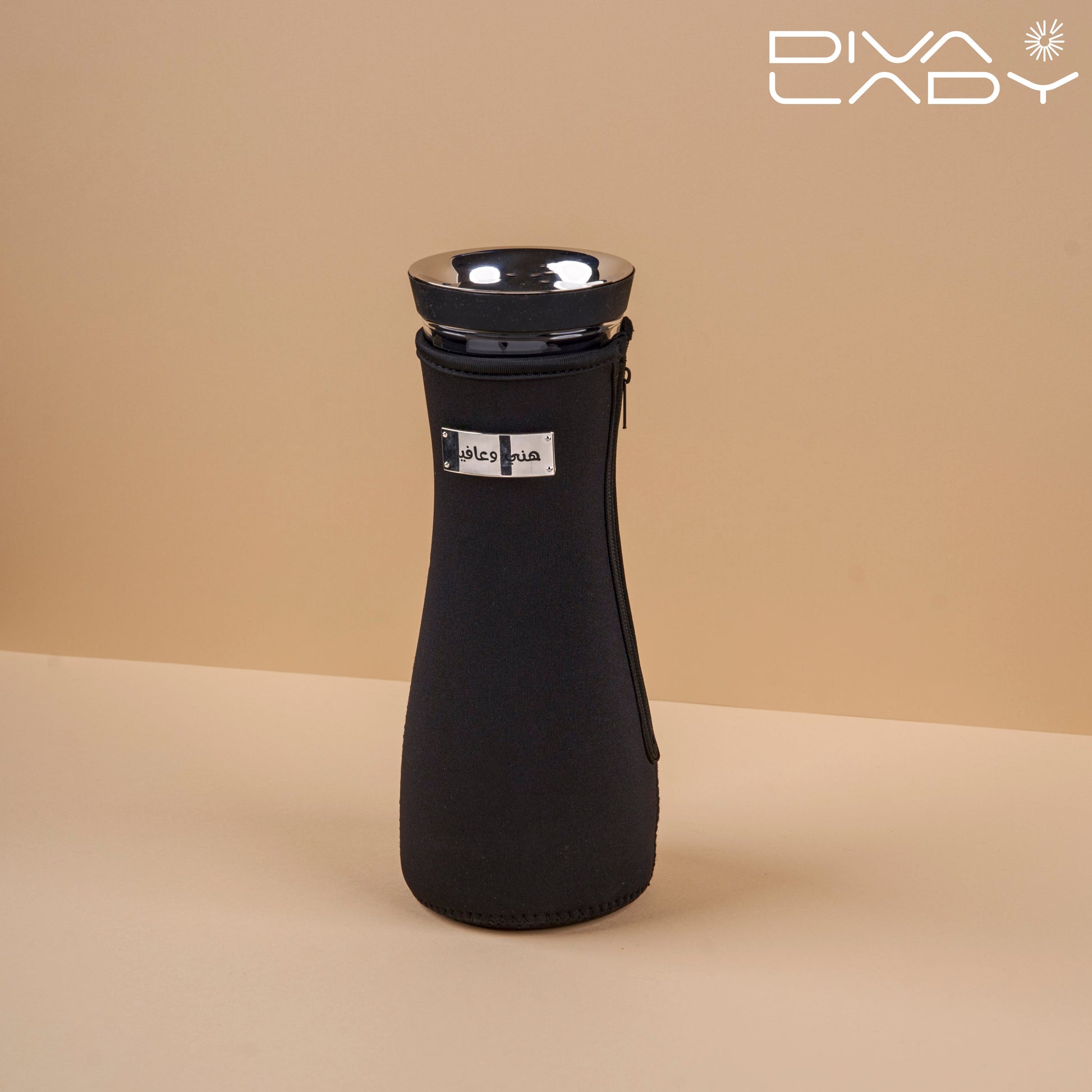دولكة عصير شفاف بغطاء استيل وجراب خارجي قماش اسود عالى الجودة