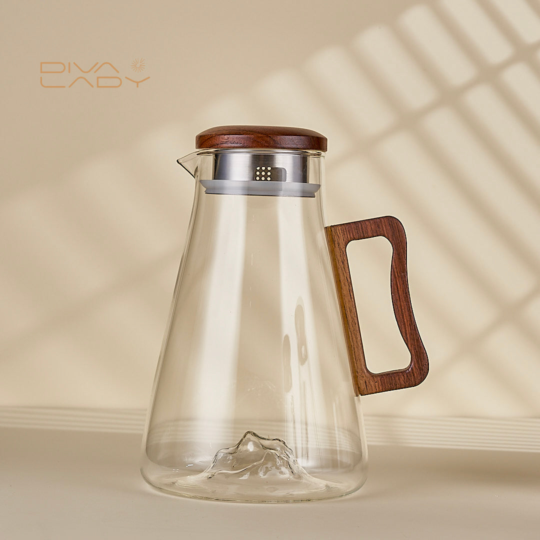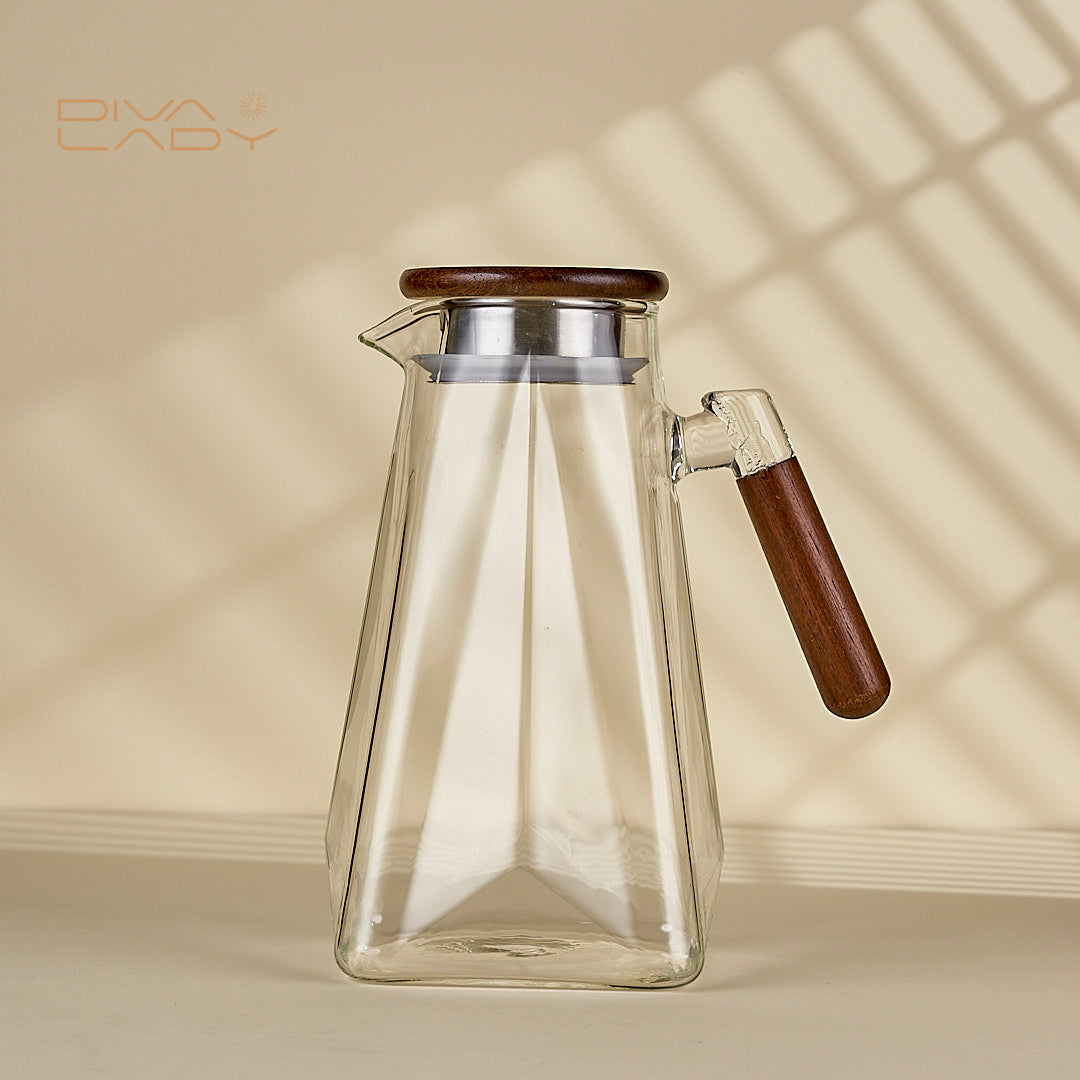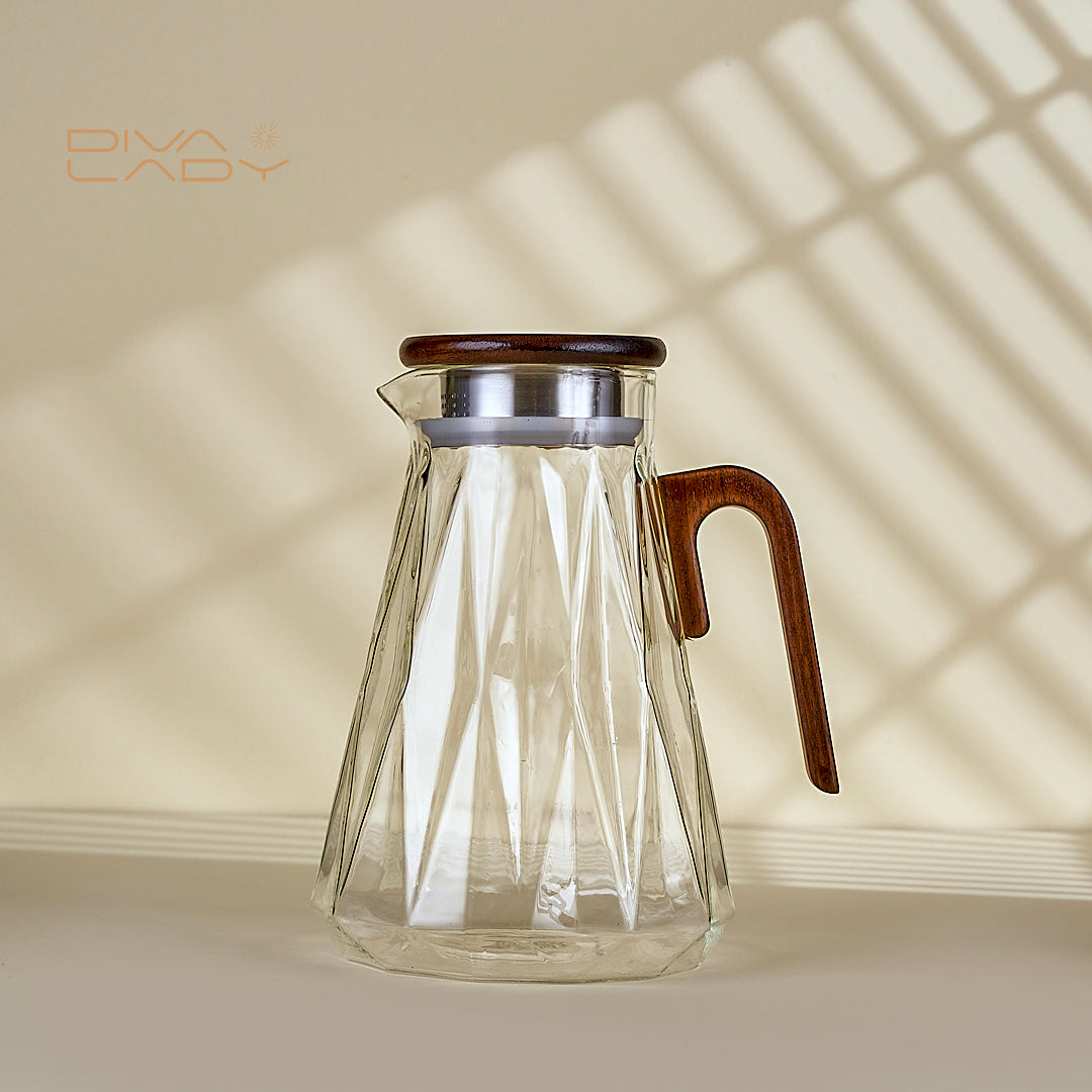 دولكة عصير زجاج أنيق مع غطاء ومقبض خشبي - مثالي للمشروبات