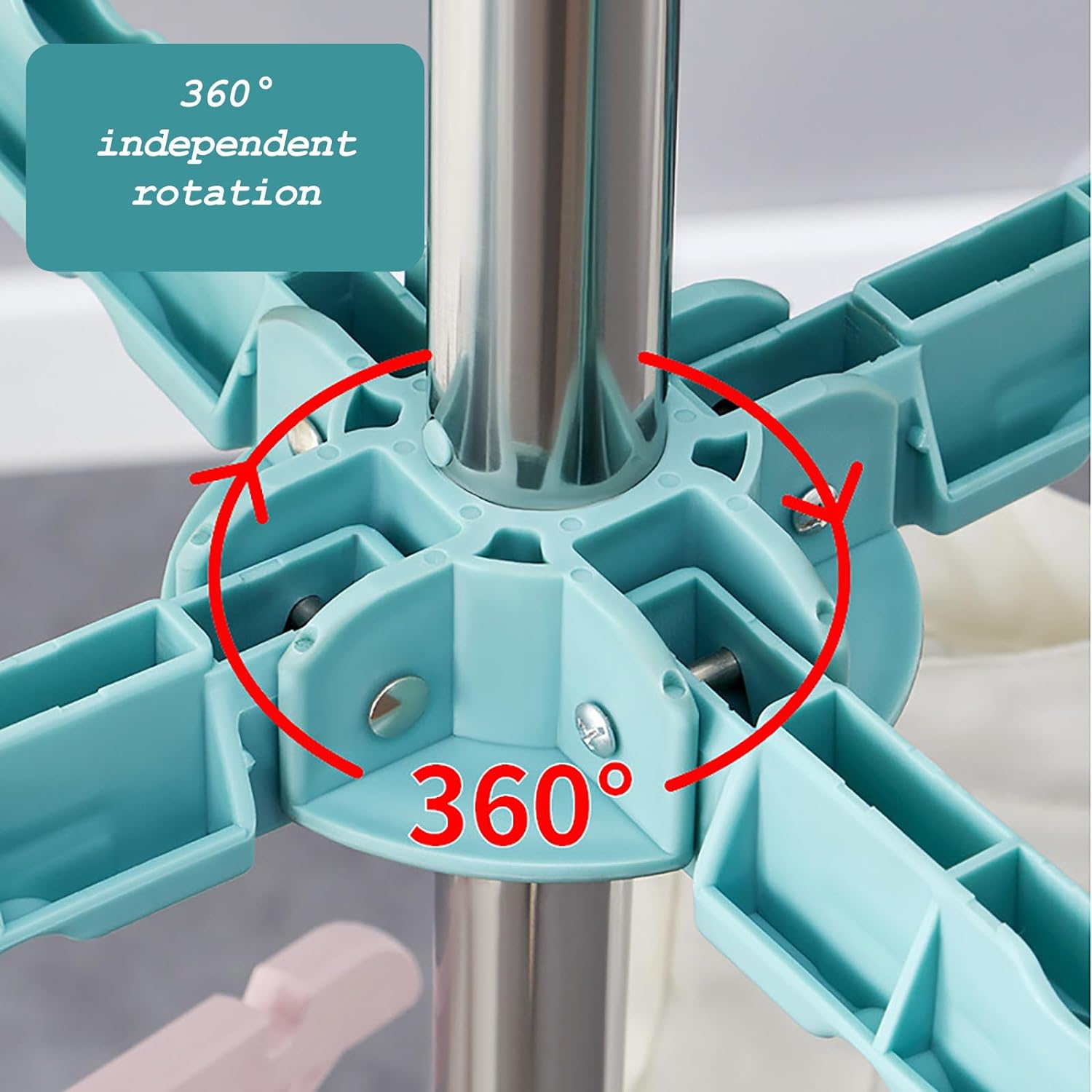 ذراع دوار 360 درجة: يمكنك الوصول بسهولة إلى الملابس المعلقة على الجانب الآخر من خلال دوران بسيط للذراع.