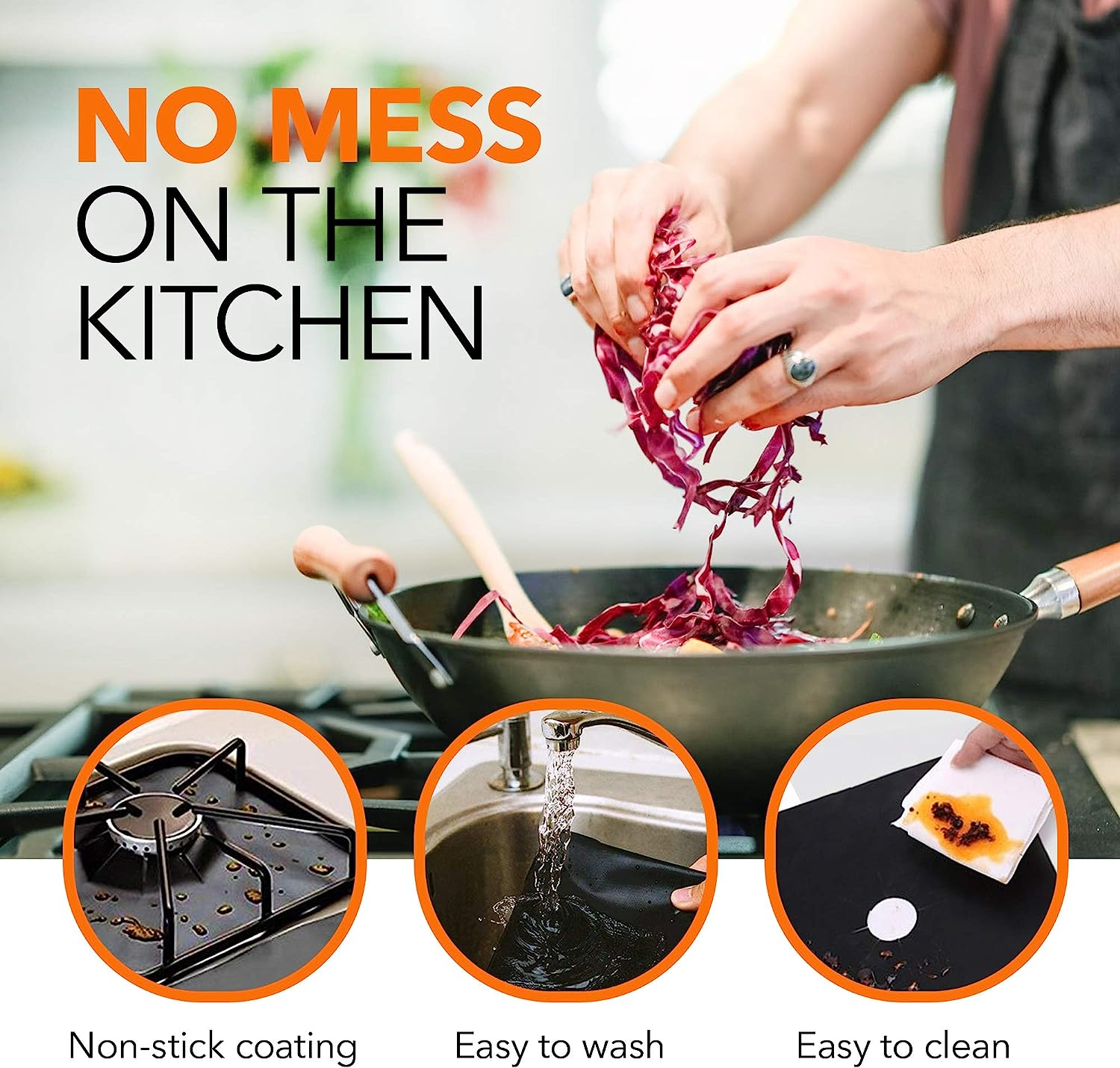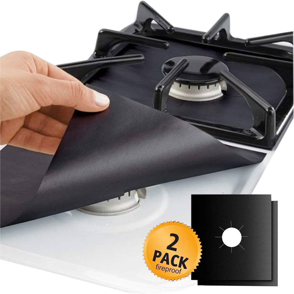 2 حزمة بريميوم أغطية موقد غاز أسود - بطانة علوية للموقد - واقي نطاق الغاز - أغطية موقد الموقد - سمك مزدوج 0.2 مم