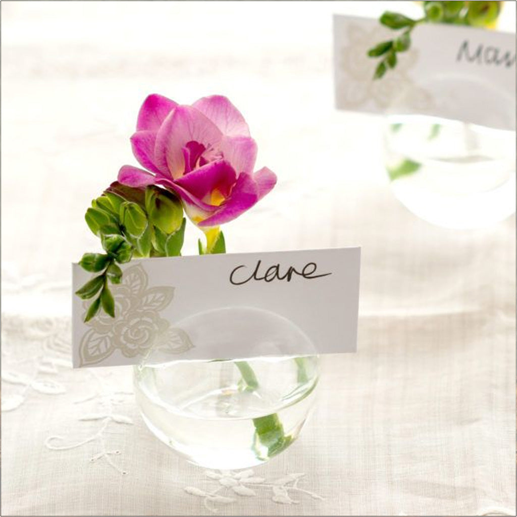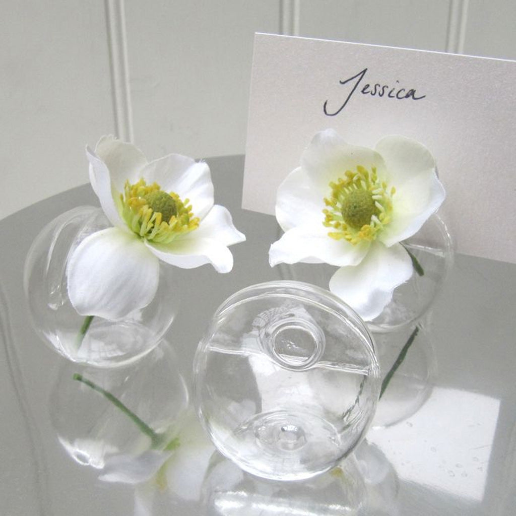 حامل بطاقات مكان طاولة الزفاف على شكل مزهرية زجاجية