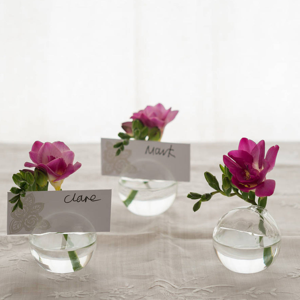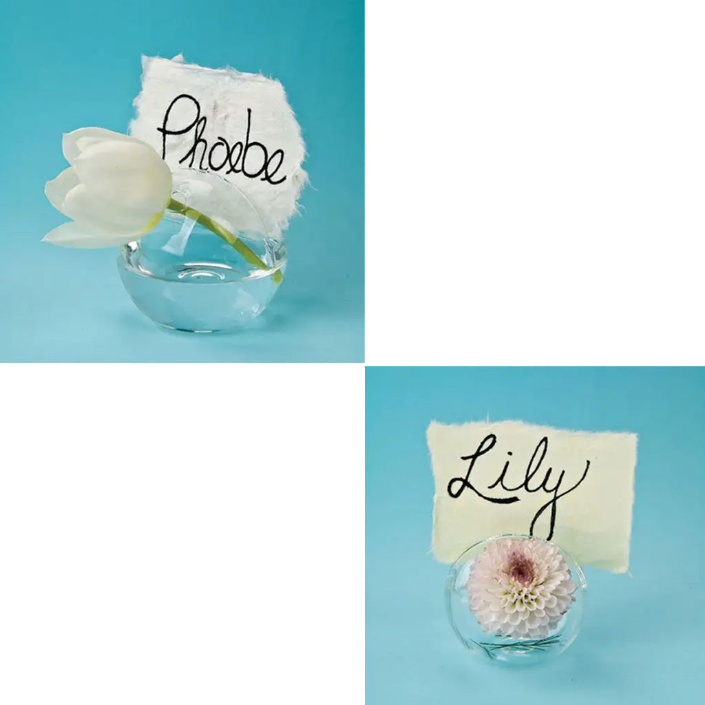 هذه الحاملات البسيطة والأنيقة لبطاقات الأماكن تُضفي لمسةً من الأناقة على مزهريات الطعام. مثالية لحفلات الزفاف أو أي مناسبة أنيقة، فهي تُوفر طريقةً مبتكرةً لتزيين طاولتك بباقات زهور مصغّرة. كما أنها تُشكّل هدايا صغيرة جميلة لضيوفك ليحملوها معهم. نسقيها مع أحجامنا الصغيرة والكبيرة لإطلالة فريدة!