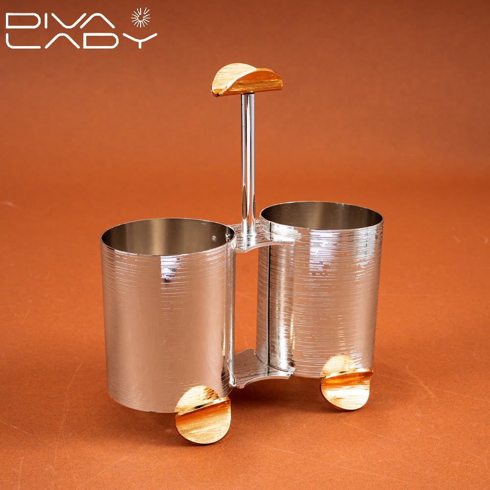 حامل أدوات مائدة أنيق وعصري، مصنوع من مواد عالية الجودة تضمن المتانة والاستدامة. يتميز الحامل بتصميم فريد يجمع بين العمليّة والجمالية، حيث يتكون من جزأين منفصلين لحمل أدوات المائدة المختلفة بشكل منظم ومرتب.