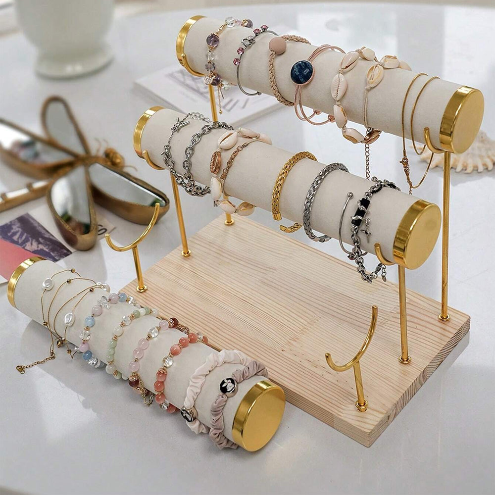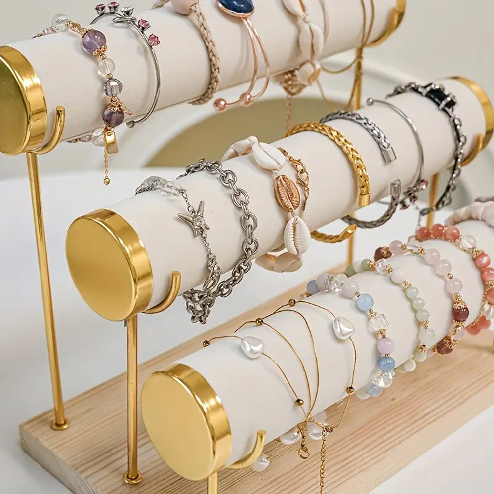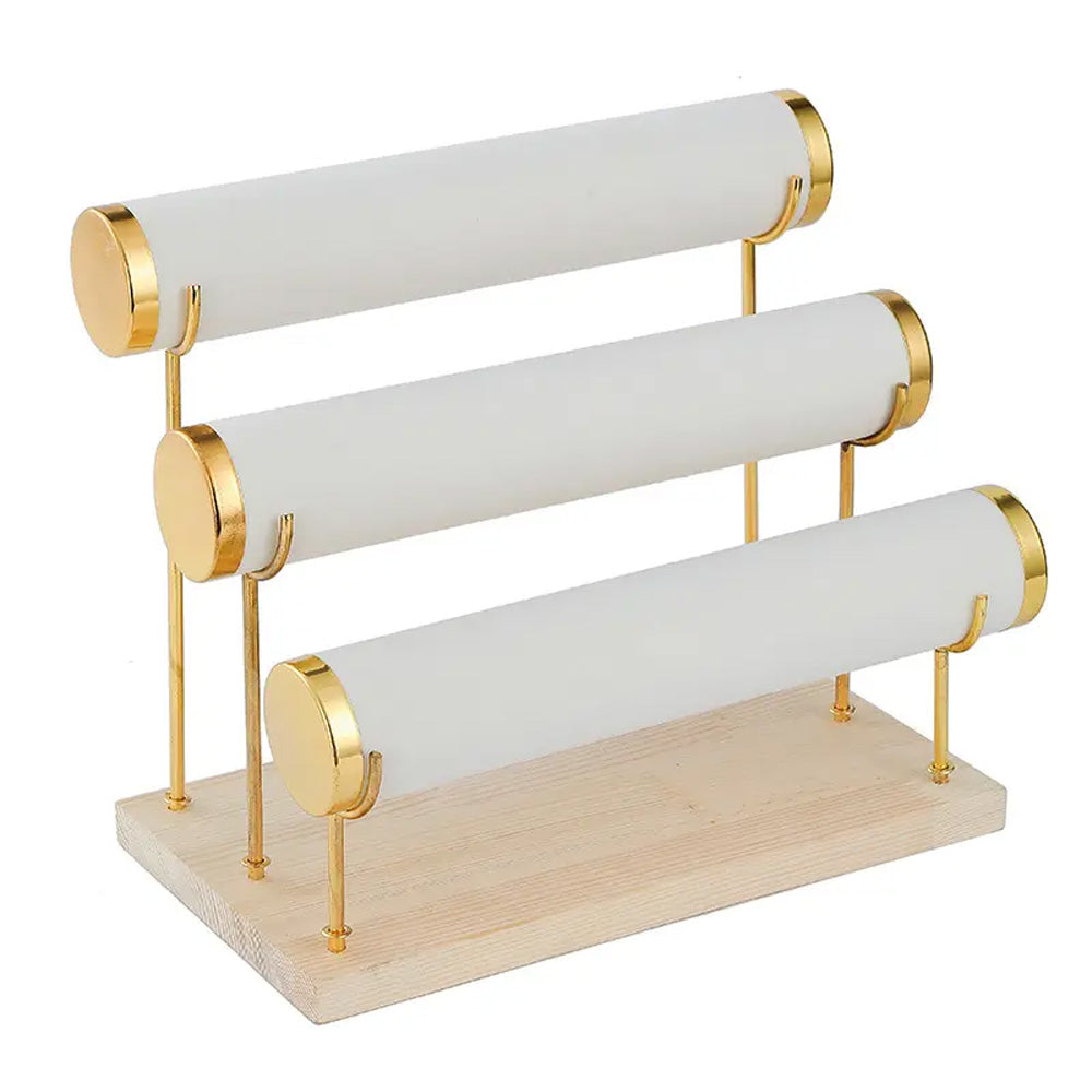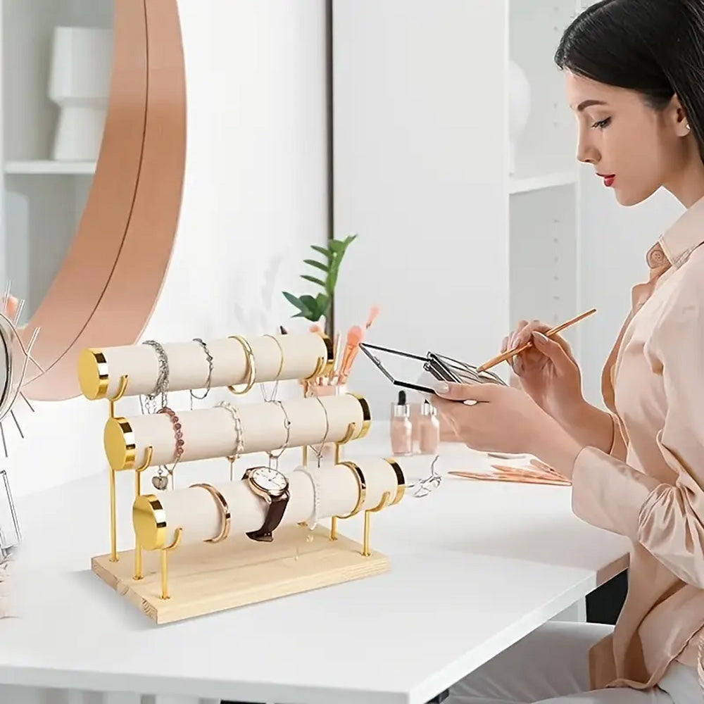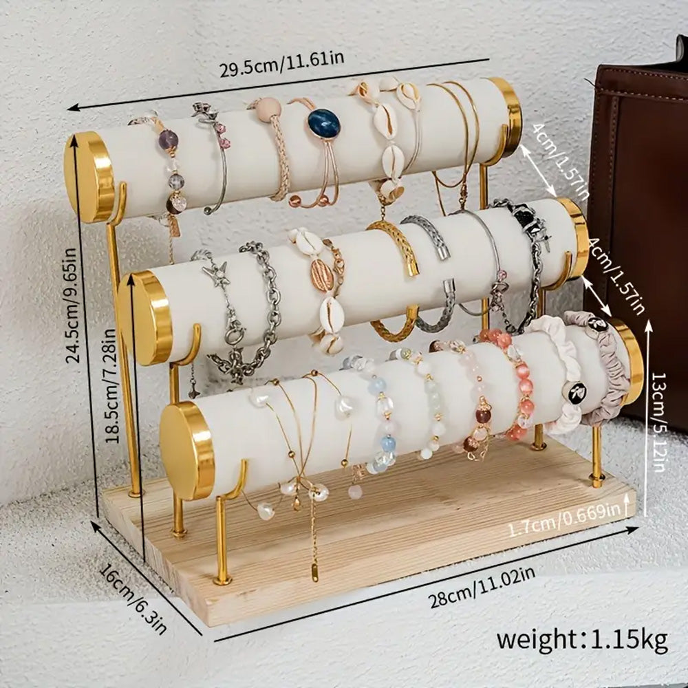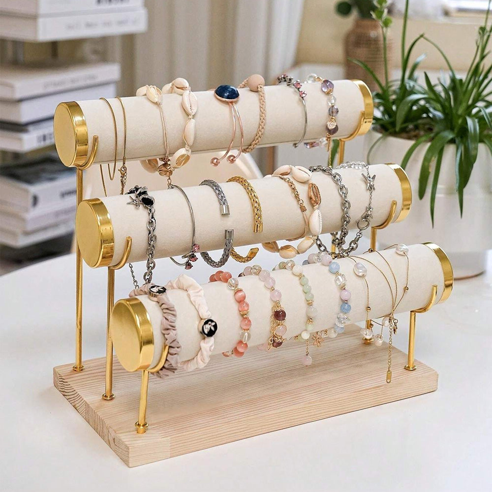 حامل مجوهرات على شكل سوار مكون من 3 طبقات، اللون: بيج