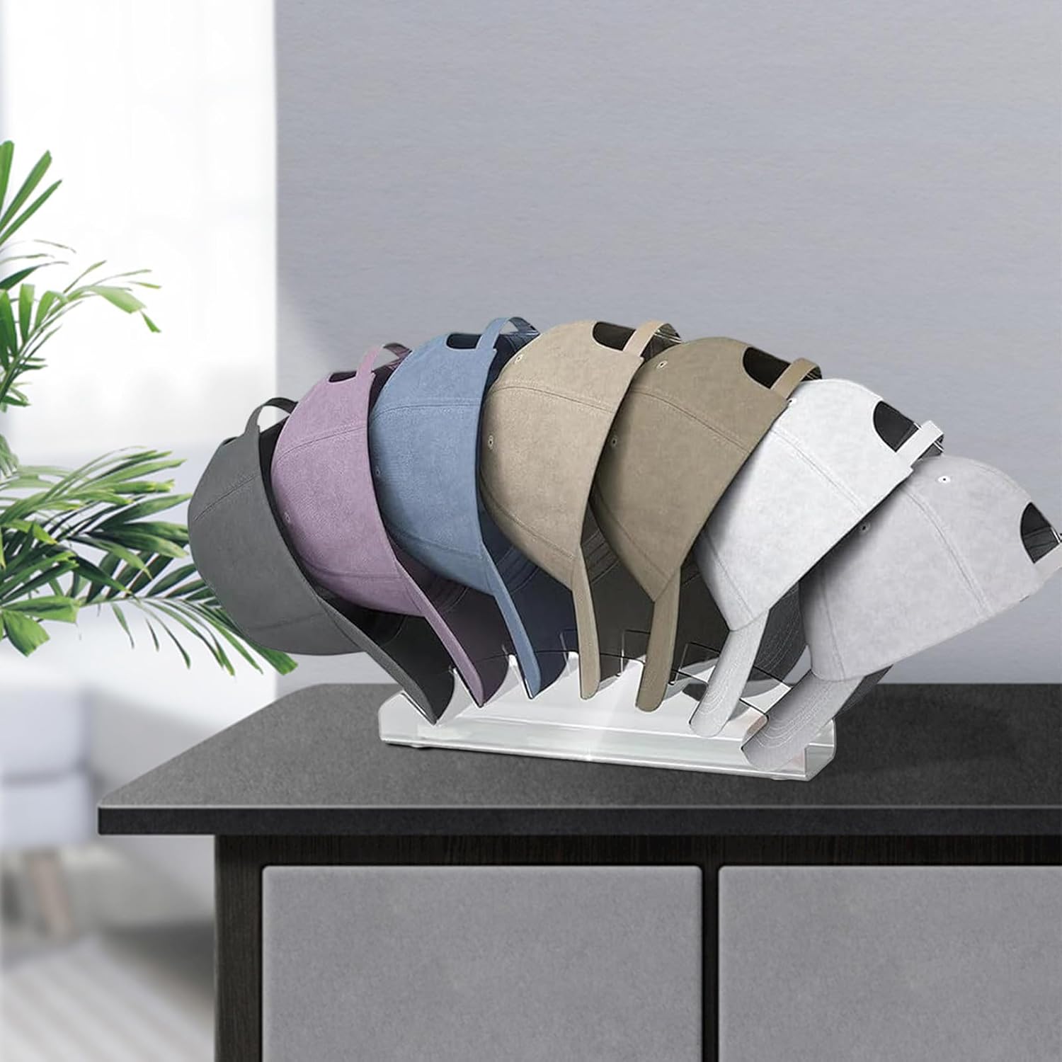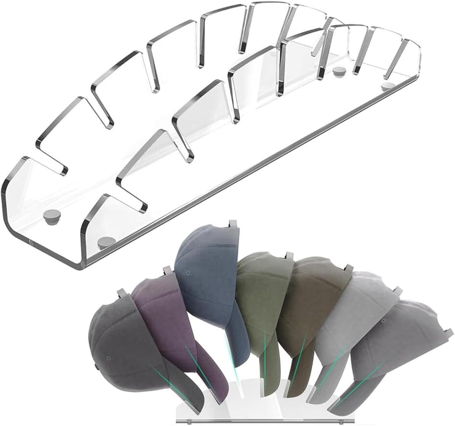 منظم قبعات أكريليك لقبعات البيسبول - حامل قبعات لعرض وتنظيم قبعات البيسبول، حامل قبعات أكريليك بدون تركيب للتخزين للرفوف وغرفة النوم والخزانة والخزانة والمكتب