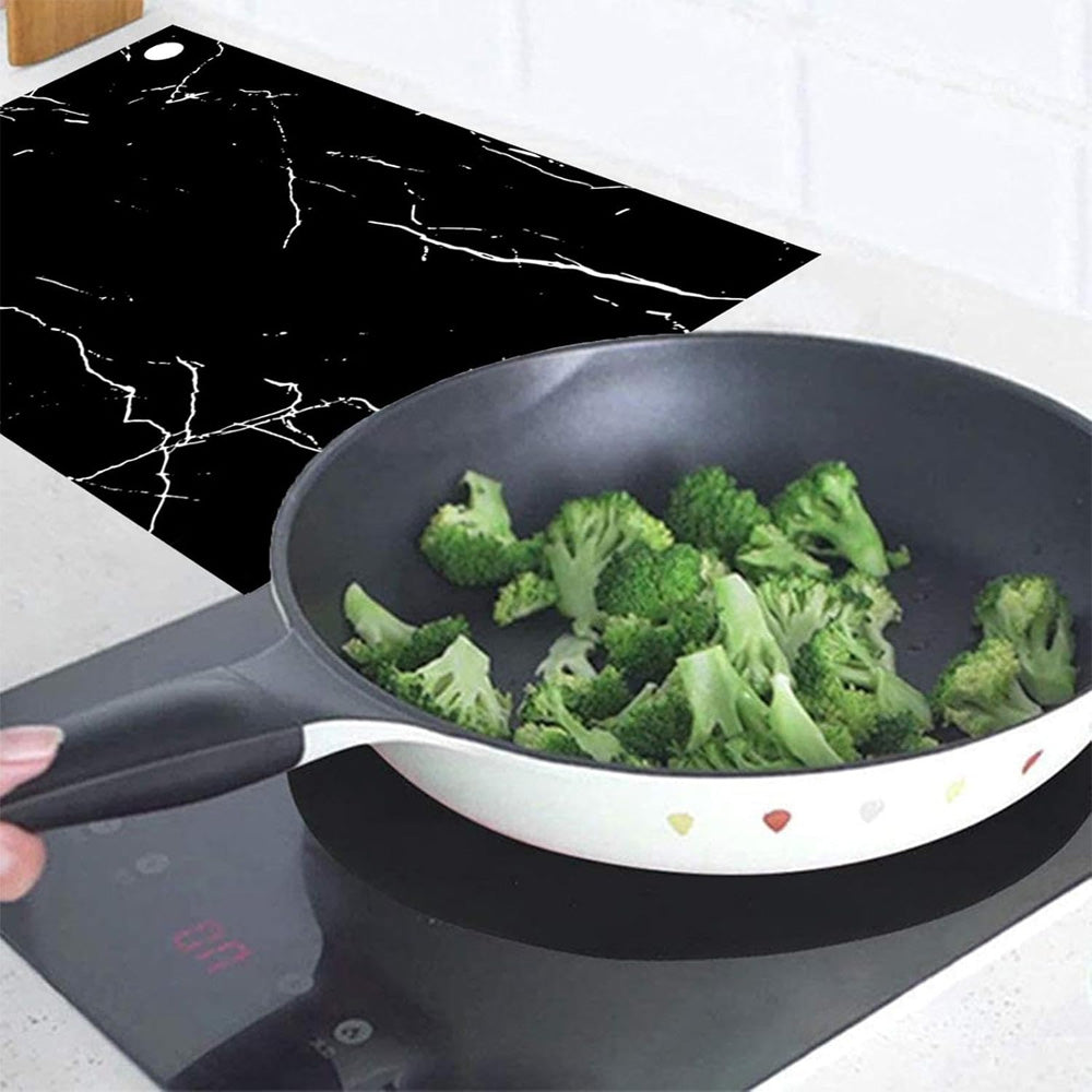 تصميم رخامي أنيق: قم بترقية مطبخك باستخدام حصيرة حماية سطح الطهي بالحث الخاصة بنا بنمط رخامي عصري. يمتزج تصميمها الرفيع للغاية بسلاسة مع مختلف أنماط المطبخ.