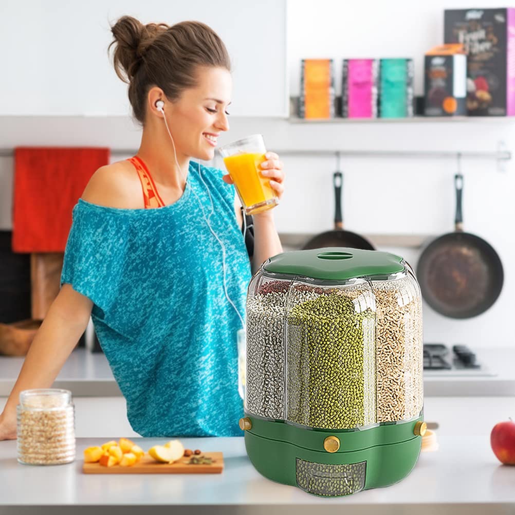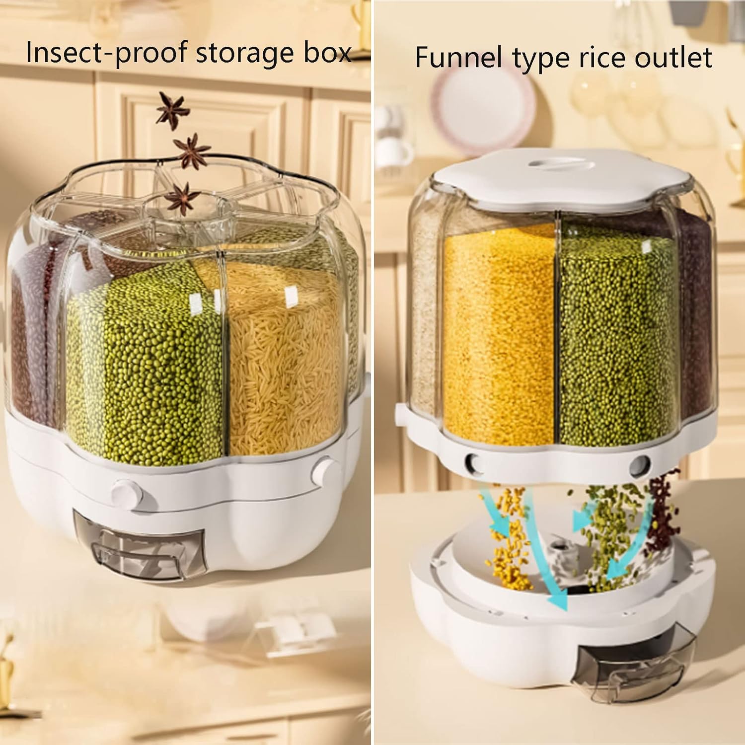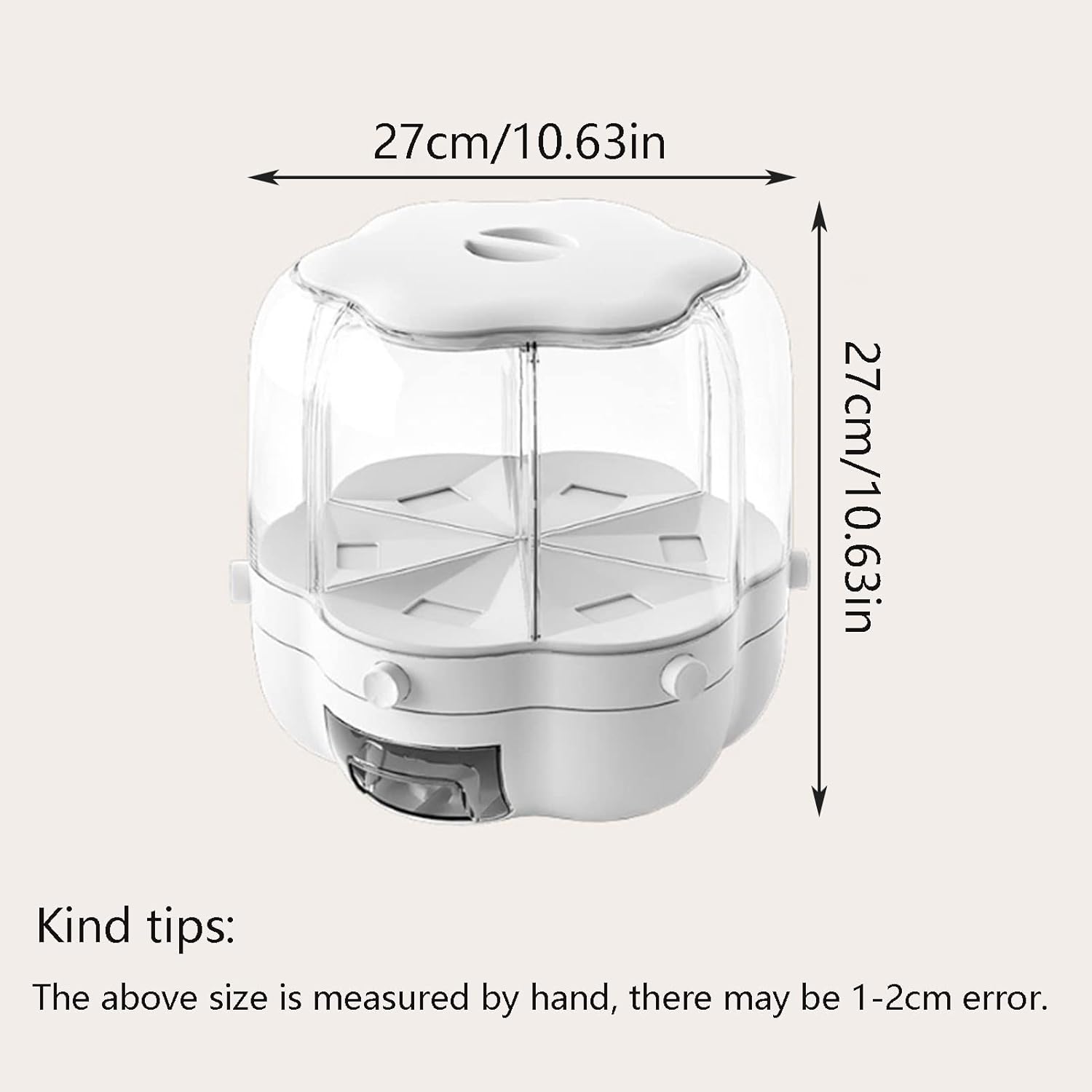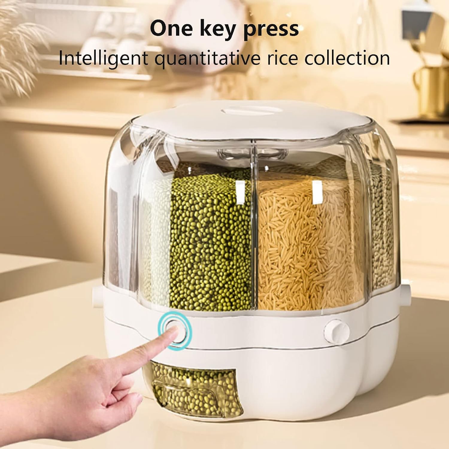 - موفر للمساحة: يمكن وضع دلو الأرز المتنوع الدوار في الزاوية، وهو عملي وموفر للمساحة، ويمكنه حمل 9 كجم من الحبوب.