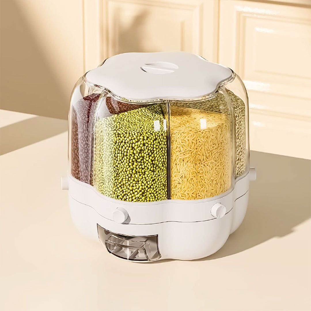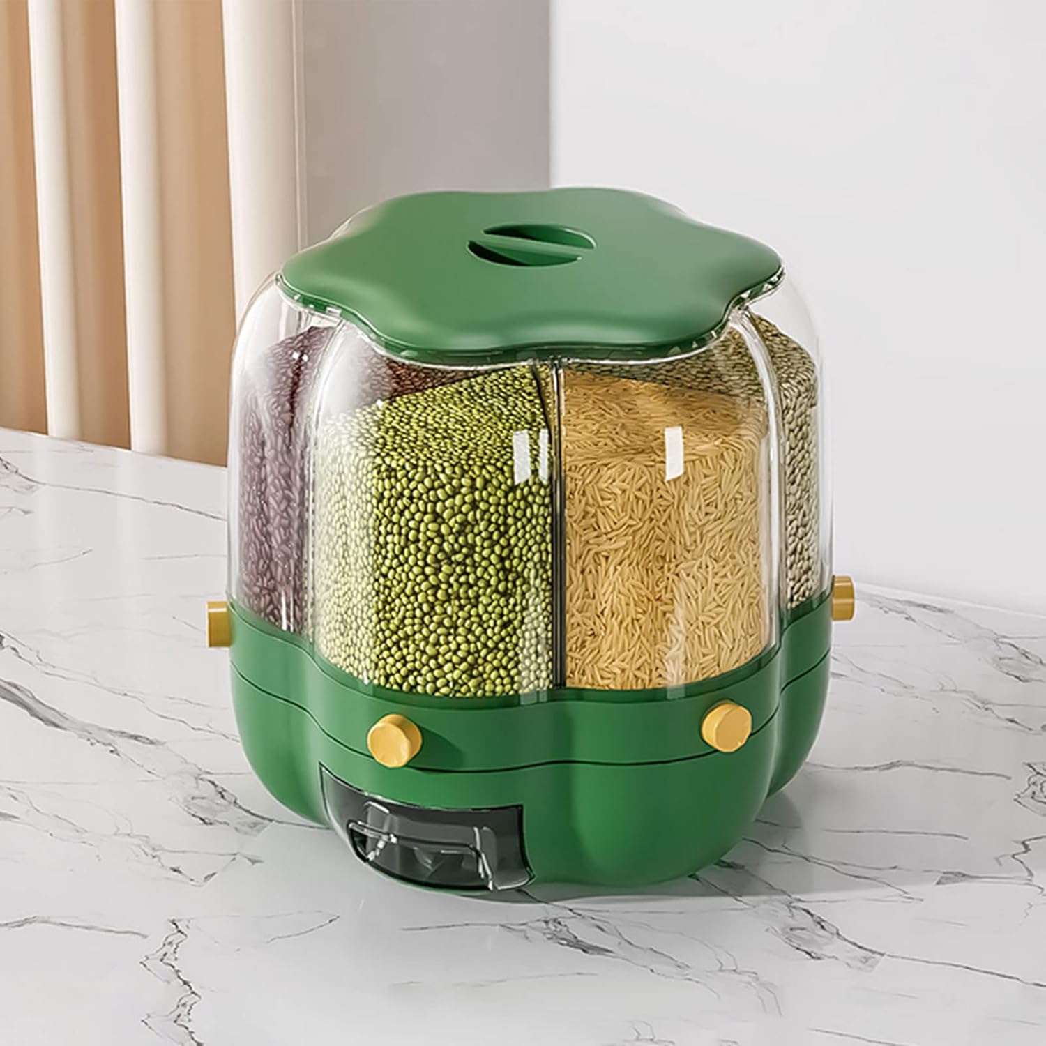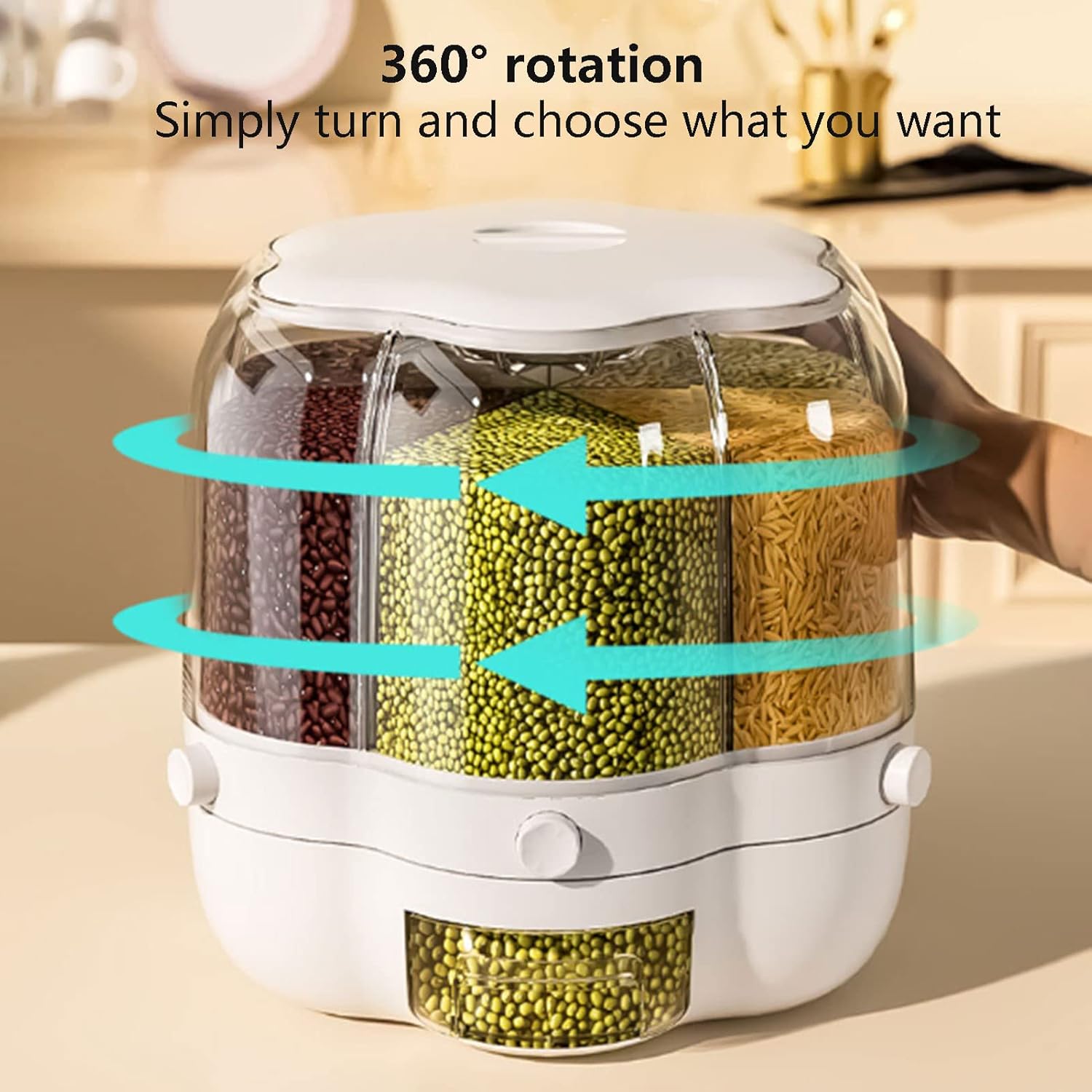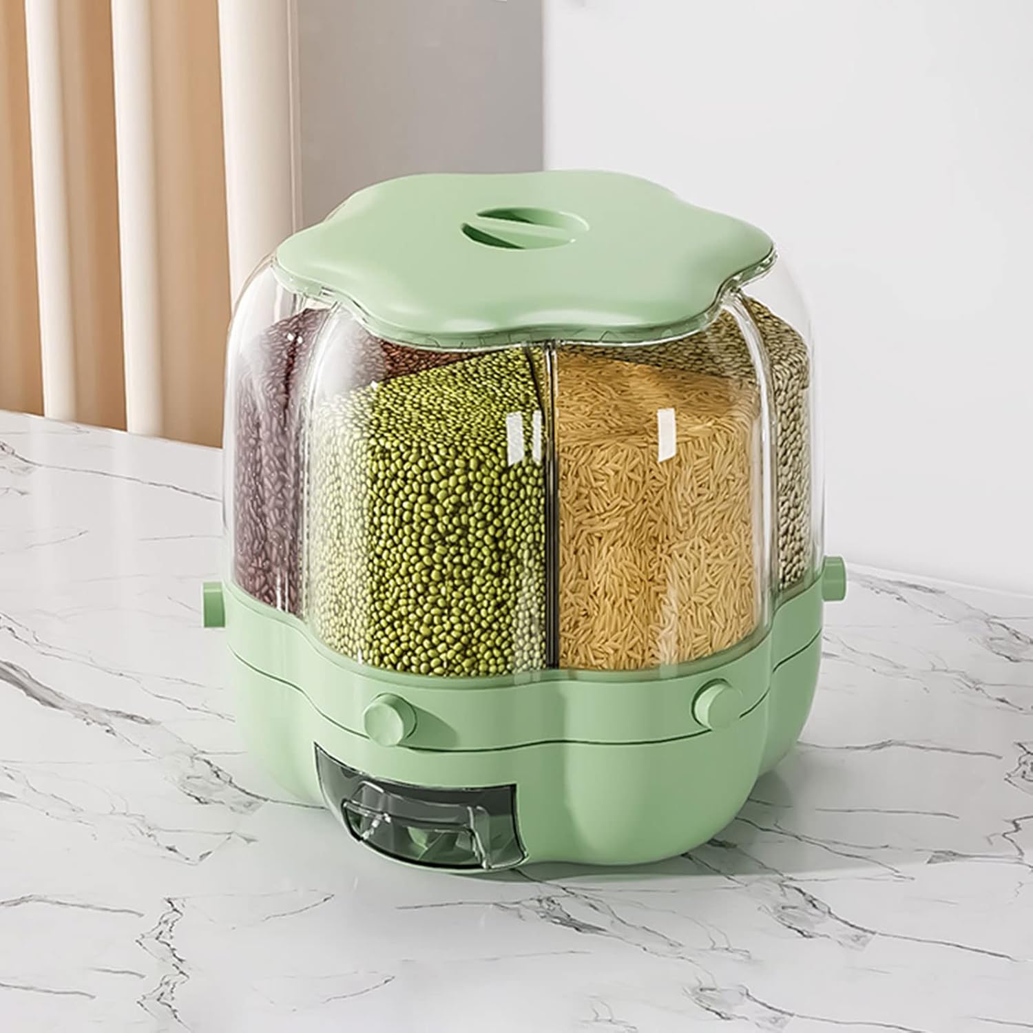 - موفر للمساحة: يمكن وضع دلو الأرز المتنوع الدوار في الزاوية، وهو عملي وموفر للمساحة، ويمكنه حمل 9 كجم من الحبوب.