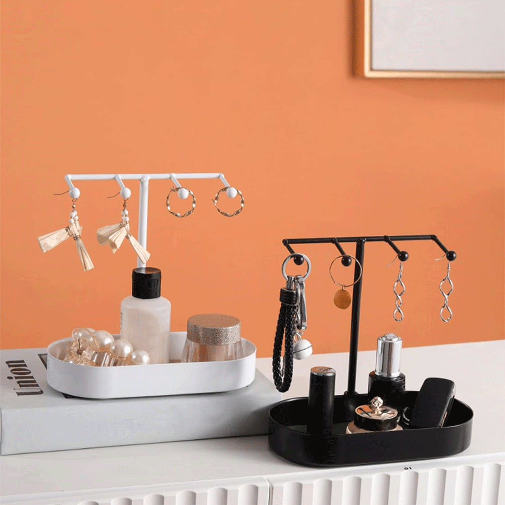 حامل منظم المجوهرات الصغير الحديث البسيط، حامل منظم المجوهرات، حامل القلادة، حامل المجوهرات الحديدي مع صينية للأقراط والقلائد والأساور والخواتم