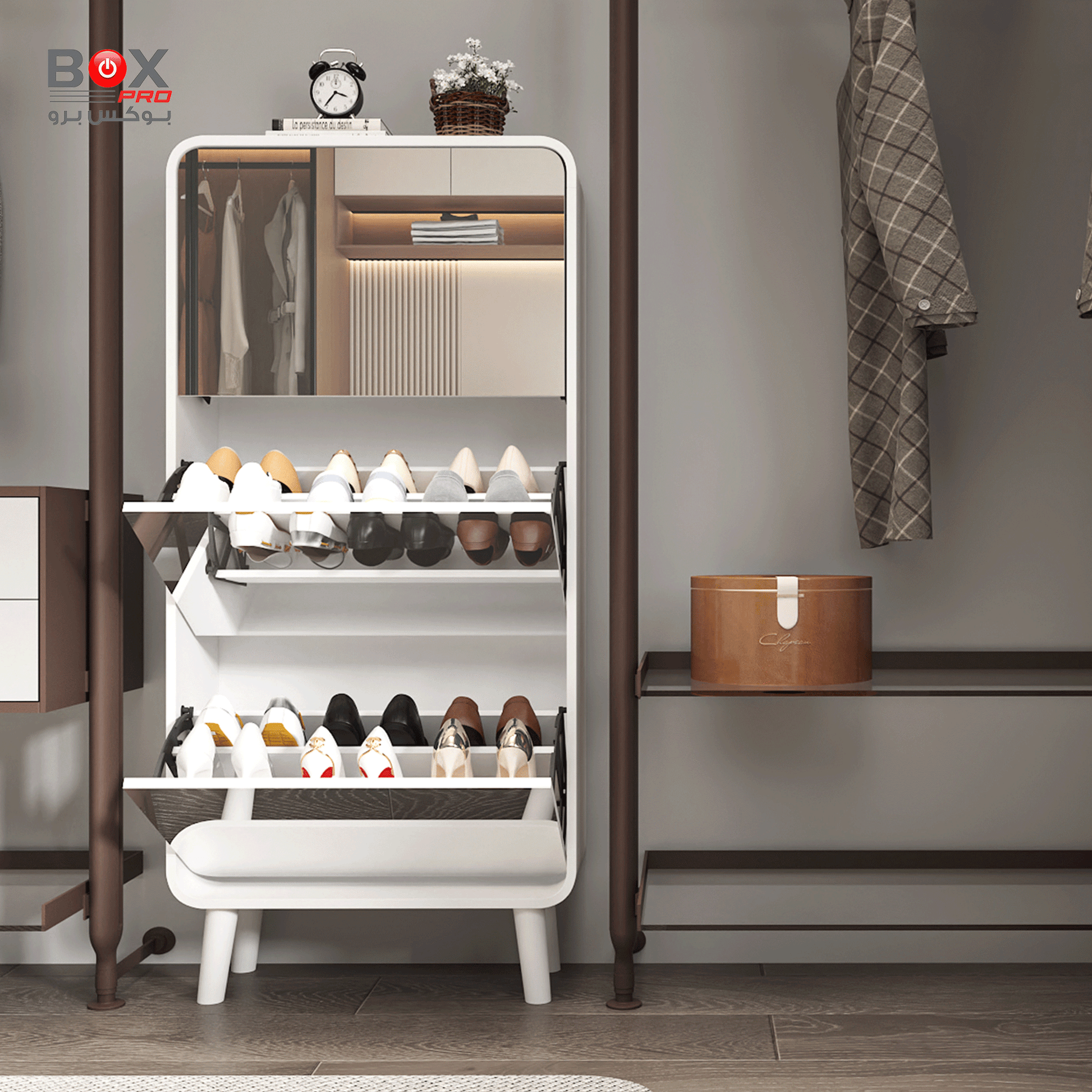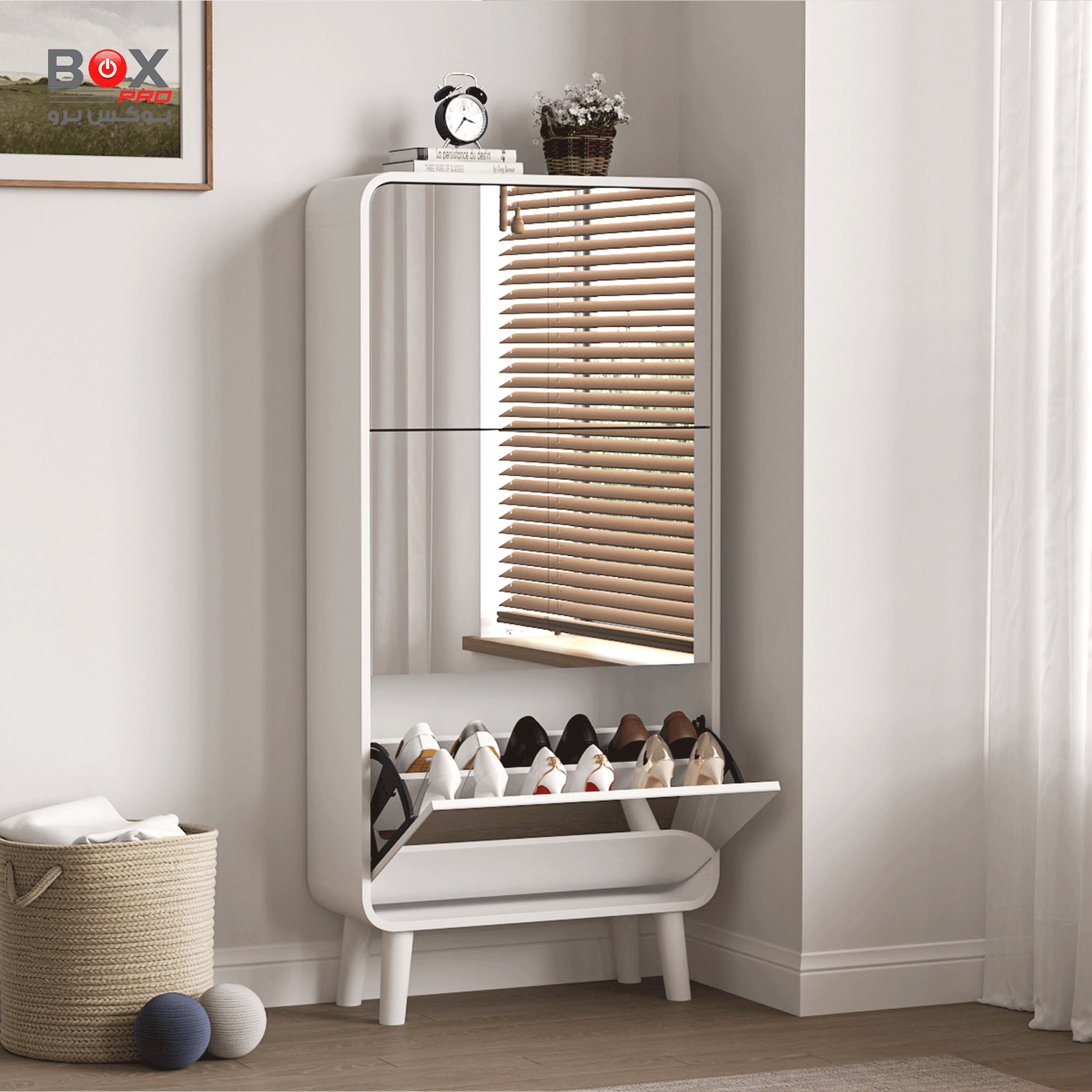 خزانة أحذية كبيرة مع مرآة – 3 أدراج عملية بتصميم أنيق من بوكس برو
