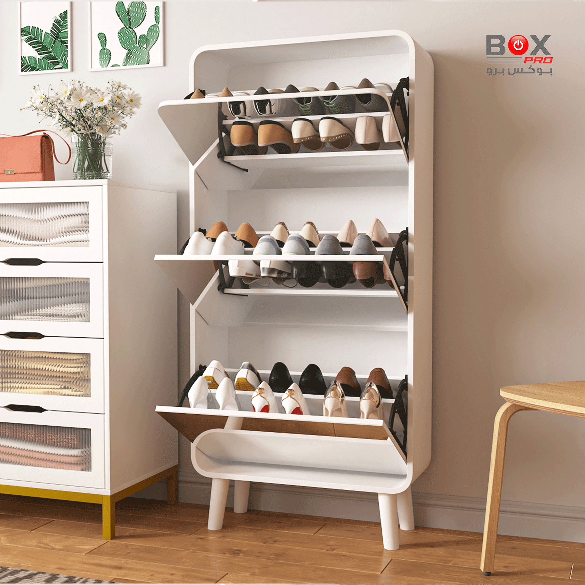 استمتع بمزيج مثالي من التنظيم والأناقة مع خزانة الأحذية الكبيرة من بوكس برو، المصممة بثلاثة أدراج قابلة للفتح لسهولة الوصول وتخزين الأحذية، بالإضافة إلى مرآة أنيقة مدمجة تضيف لمسة عملية وجمالية في مدخل منزلك أو غرفة نومك.