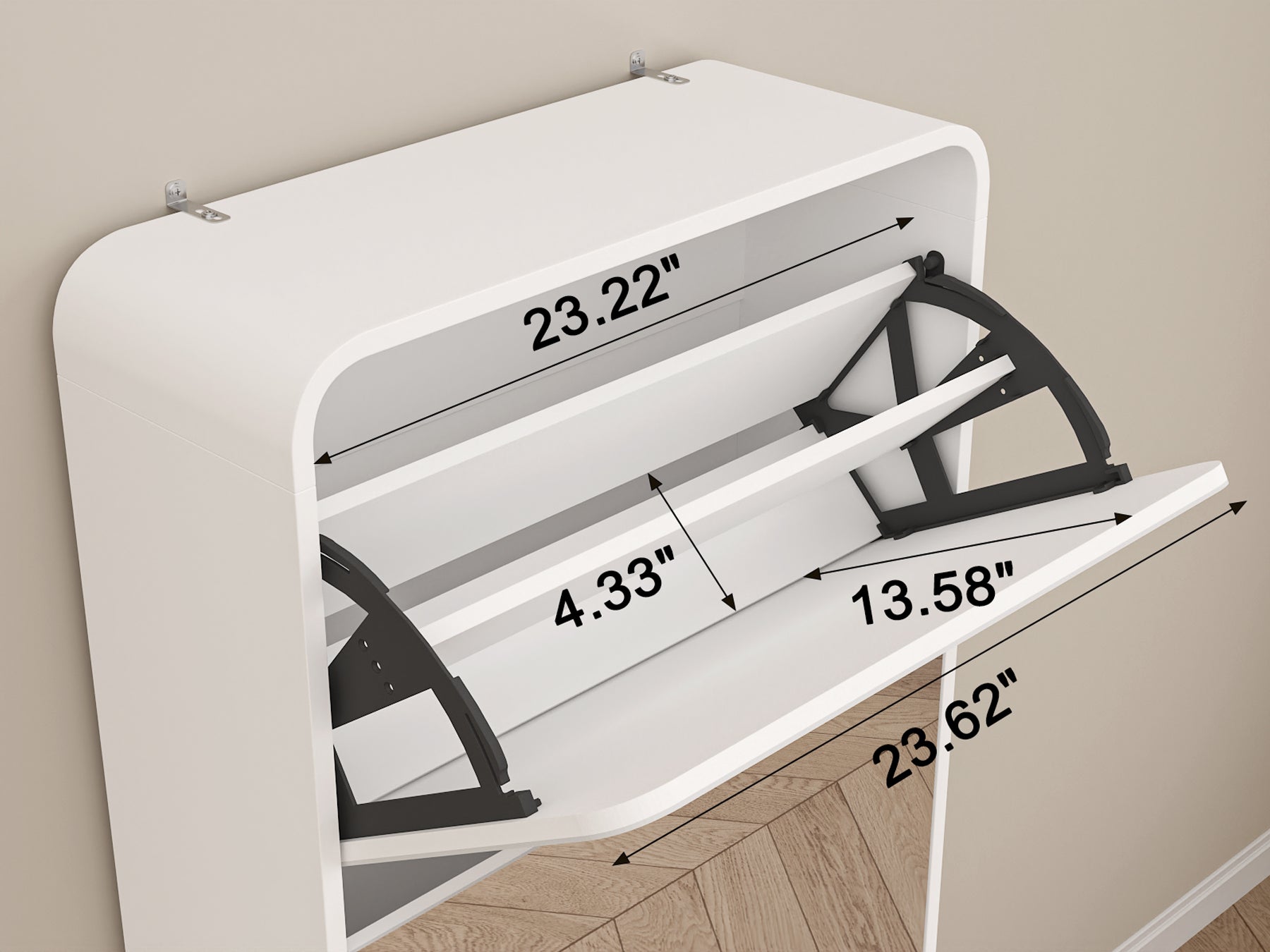 خزانة أحذية كبيرة بثلاثة أدراج قابلة للفتح مع مرآة ورفوف قابلة للإزالة، خزانة تخزين أحذية بأرجل ثابتة، خزانة تنظيم أحذية بيضاء للمدخل وغرفة المعيشة من بوكس برو