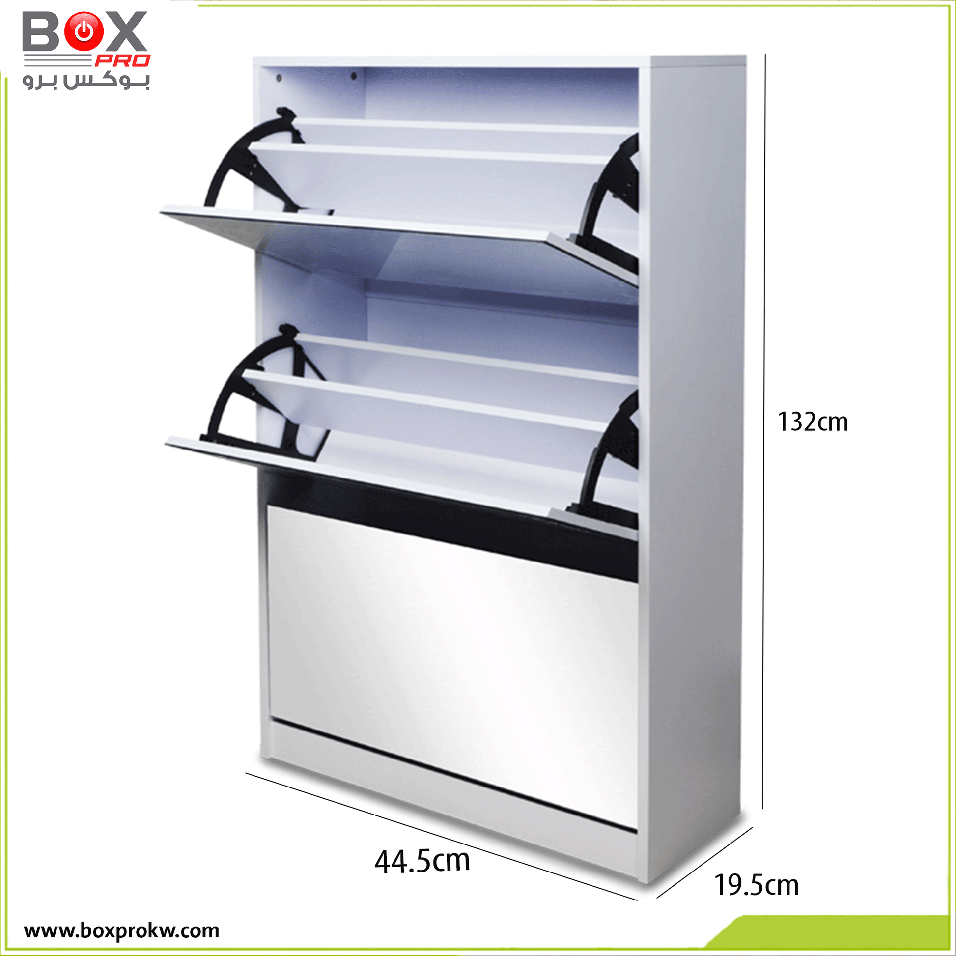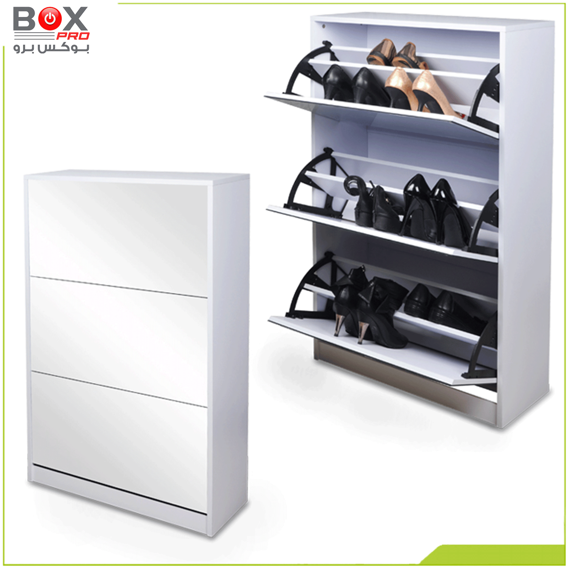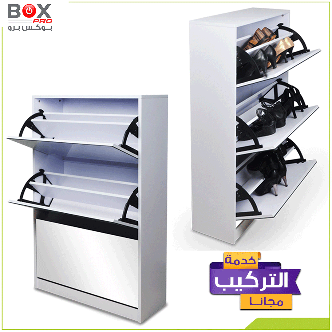 نظّم أحذيتك بذكاء مع خزانة الأحذية الكبيرة من بوكس برو، التي تجمع بين السعة العملية والتصميم العصري. تحتوي على 4 أدراج واسعة قابلة للفتح، لتمنحك مساحة تخزين مثالية، مع مرآة أنيقة مدمجة تضيف لمسة من الفخامة والوظيفة في آن واحد.