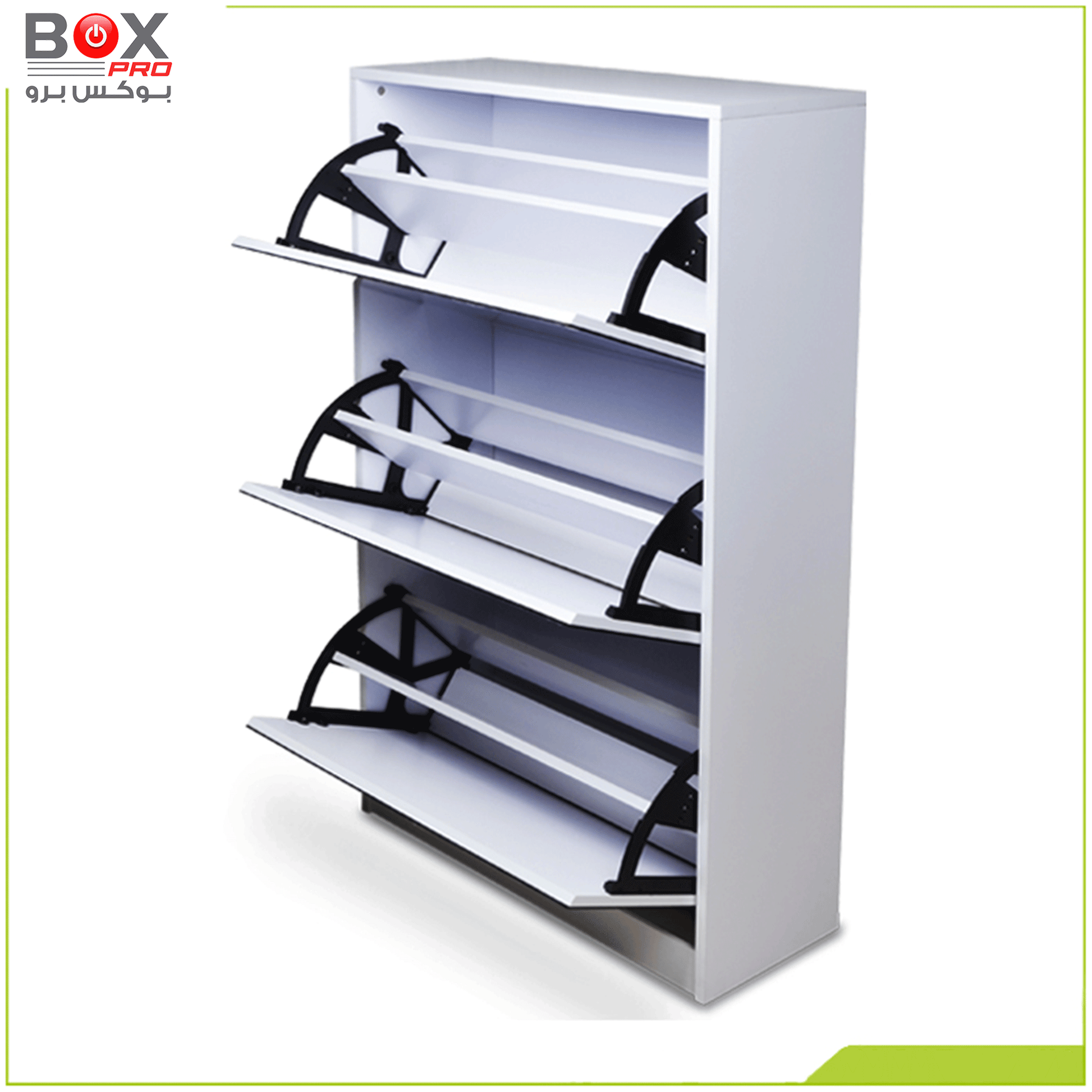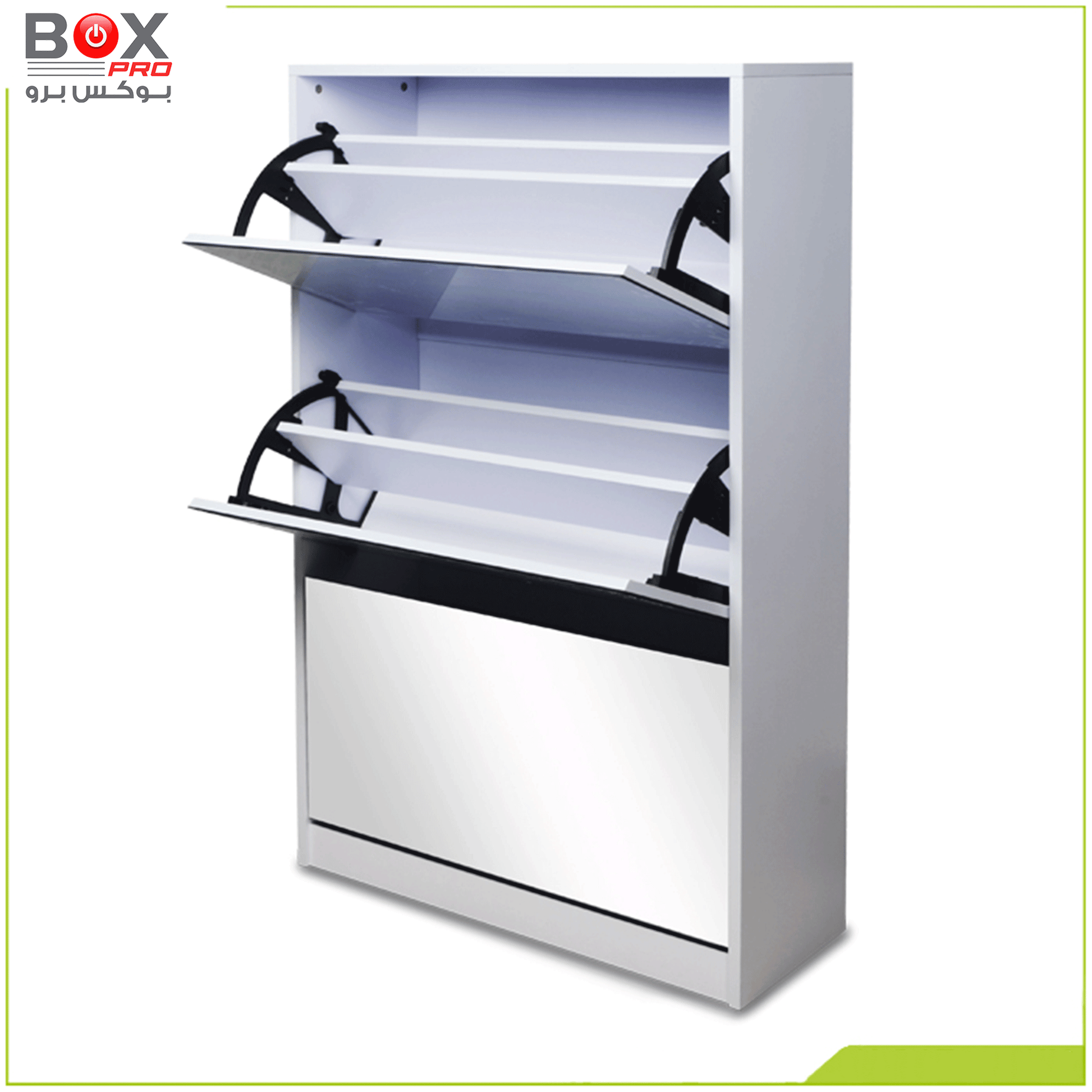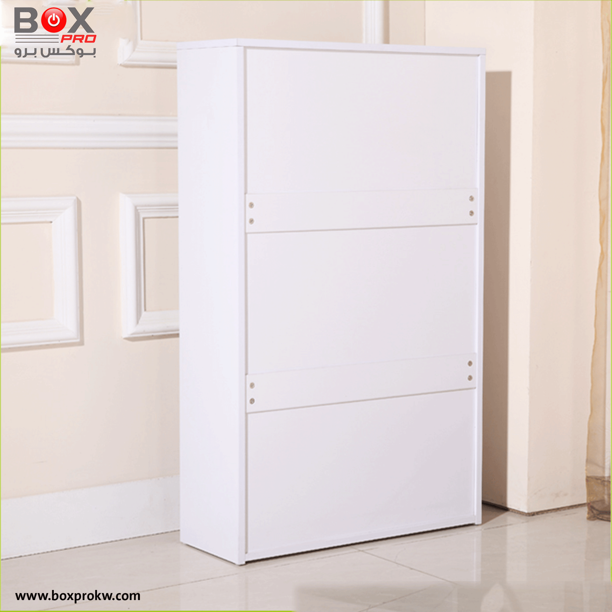 نظّم أحذيتك بذكاء مع خزانة الأحذية الكبيرة من بوكس برو، التي تجمع بين السعة العملية والتصميم العصري. تحتوي على 4 أدراج واسعة قابلة للفتح، لتمنحك مساحة تخزين مثالية، مع مرآة أنيقة مدمجة تضيف لمسة من الفخامة والوظيفة في آن واحد.