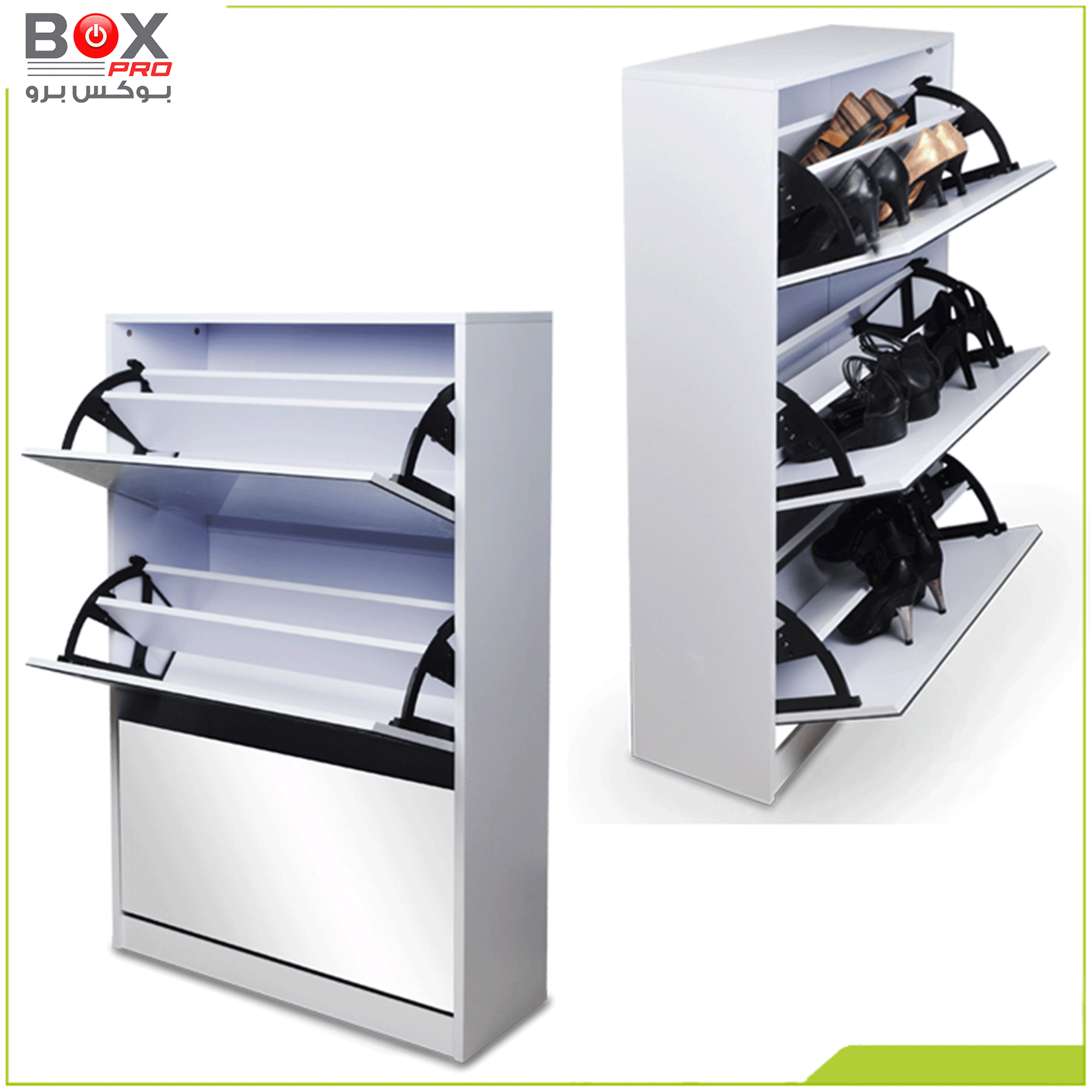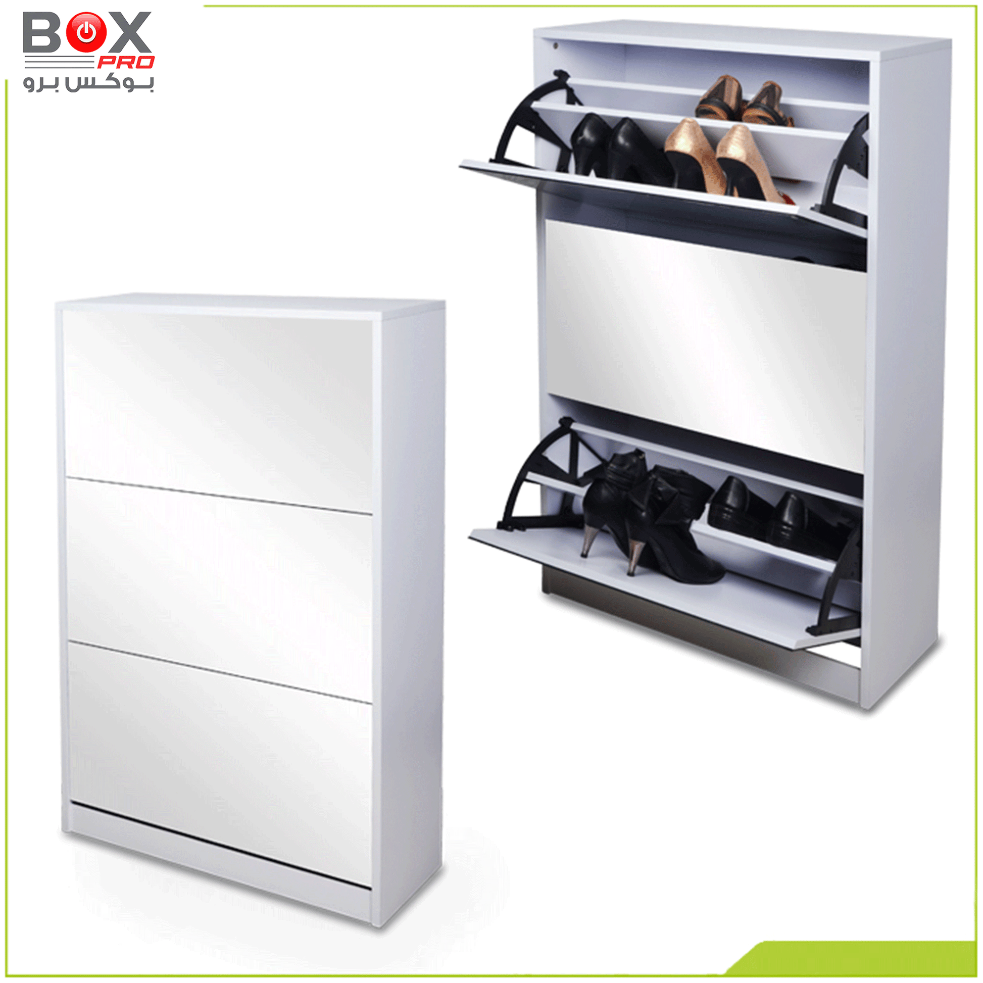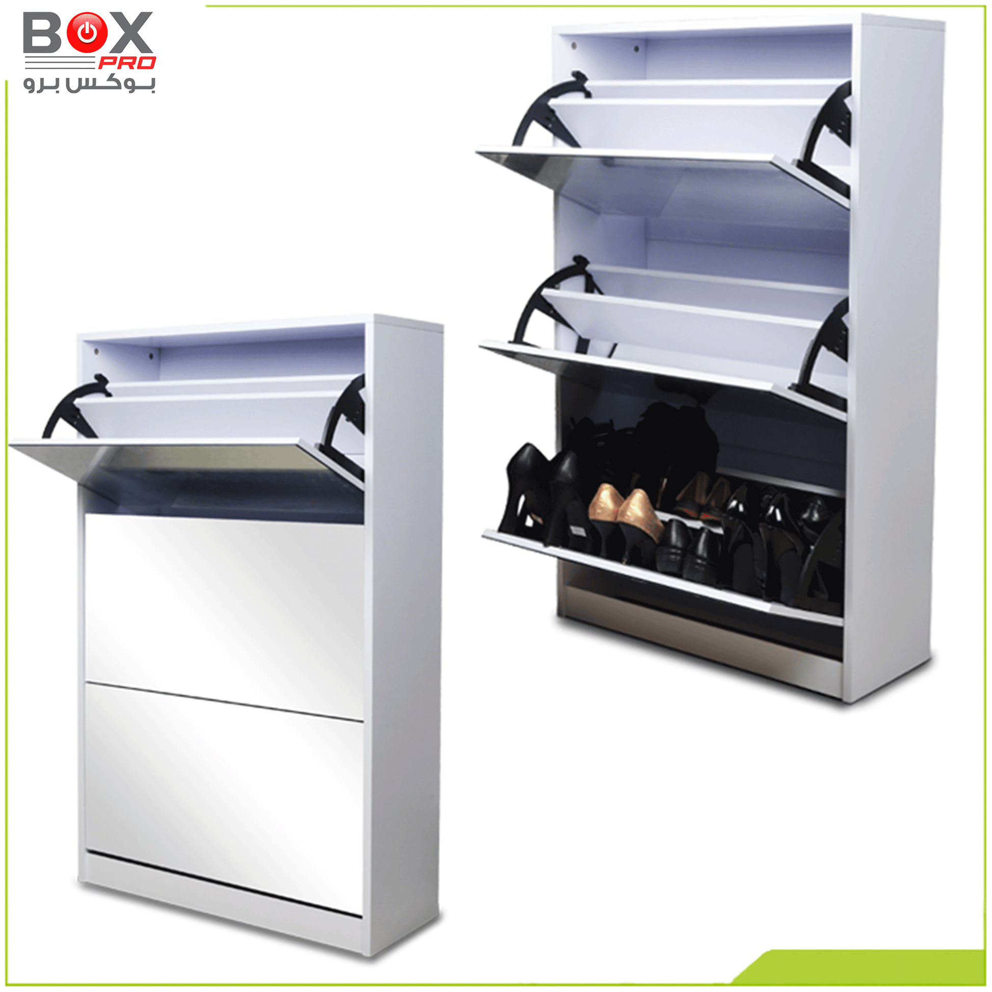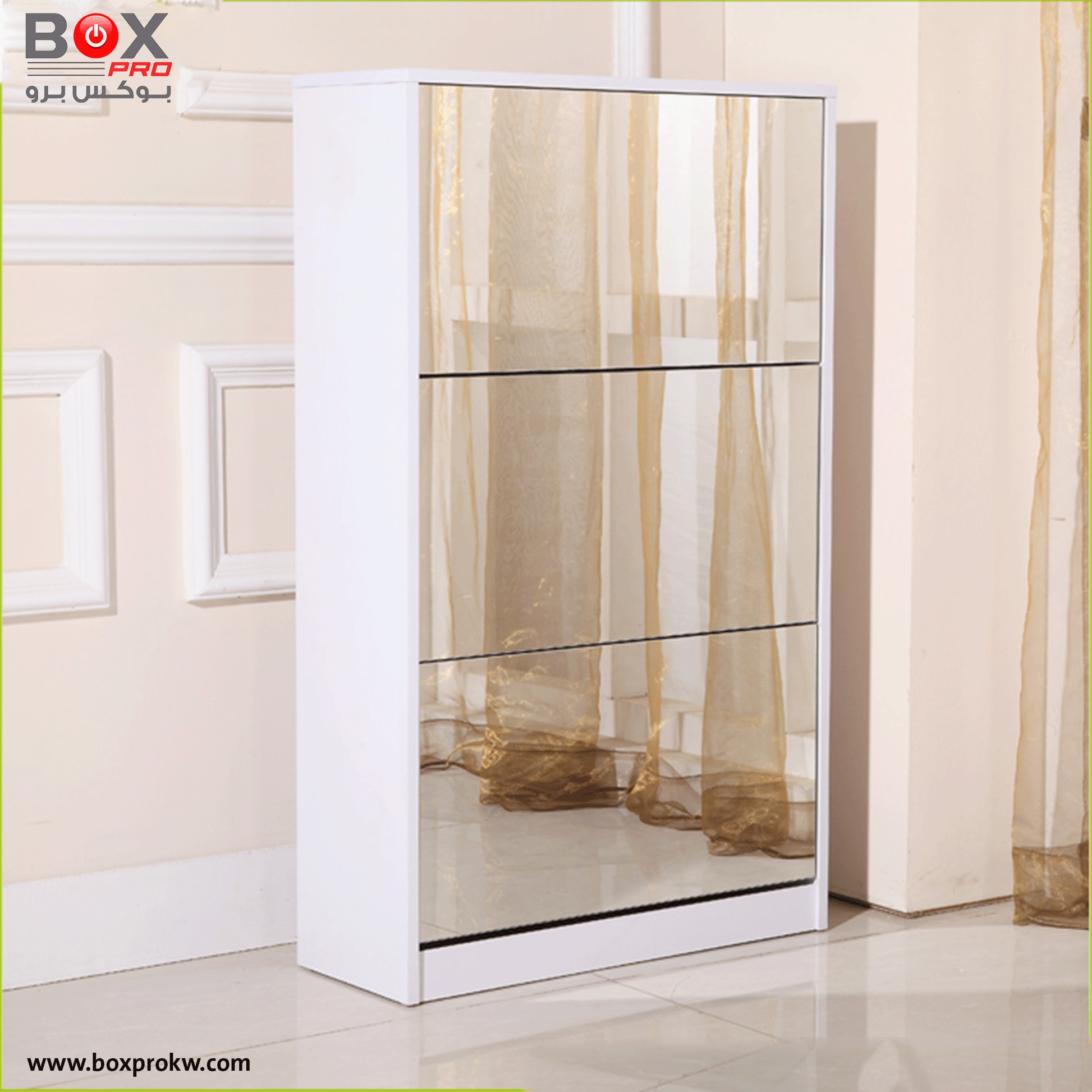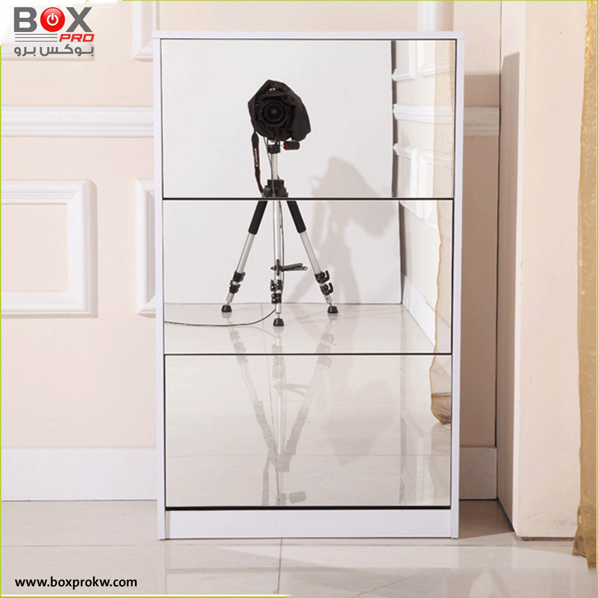 خزانة أحذية كبيرة 4 أدراج مع مرآة – أناقة وتنظيم من بوكس برو