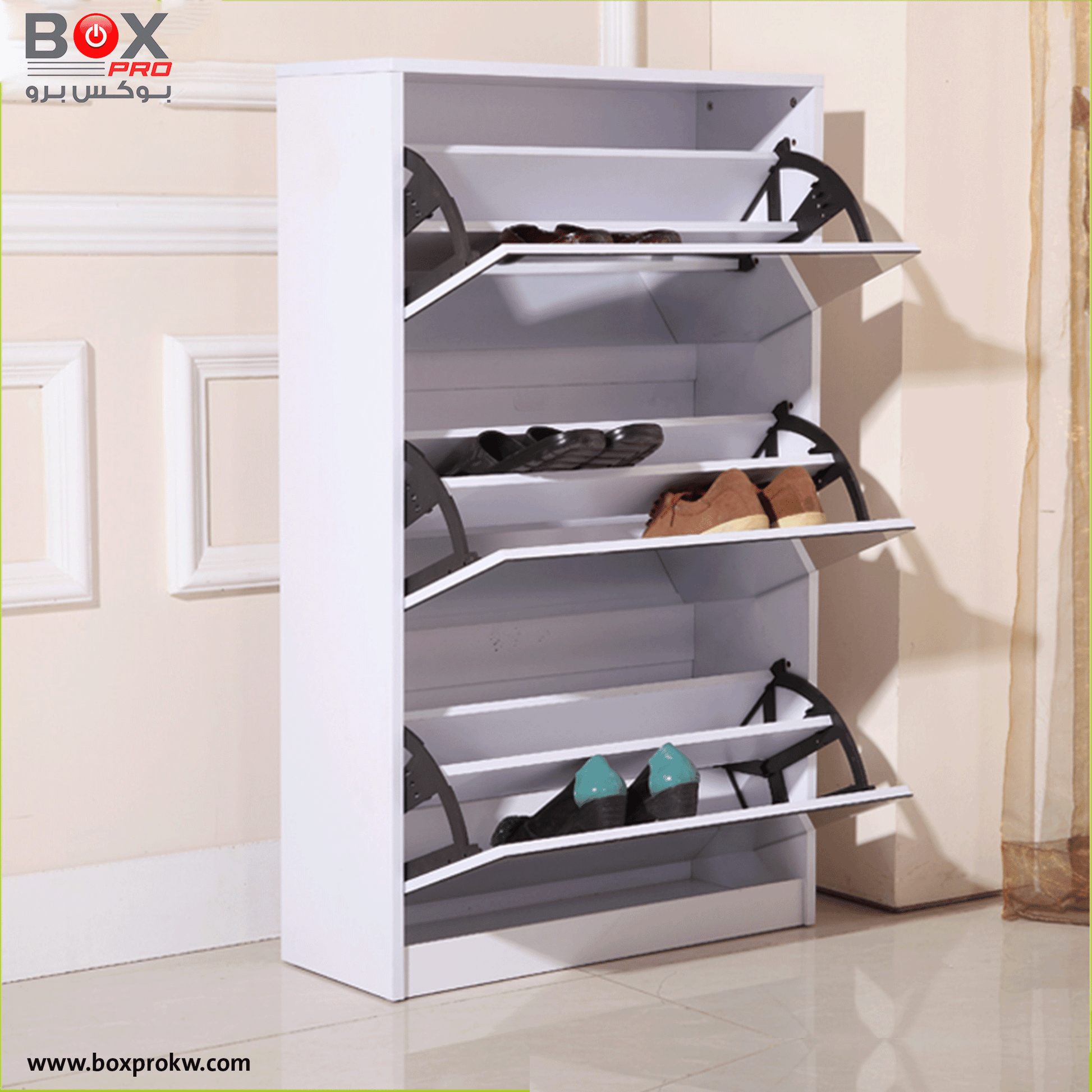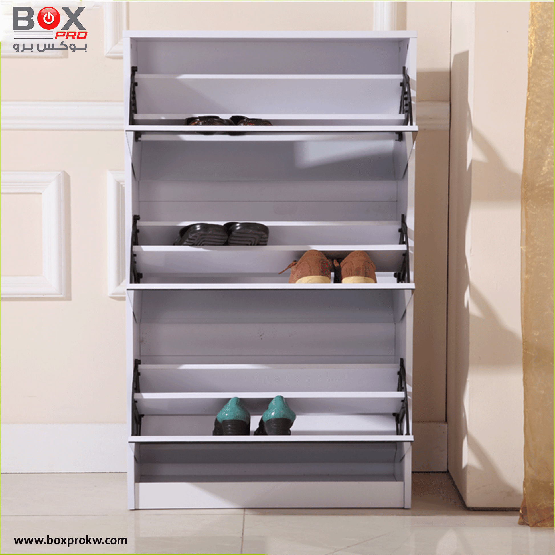 4 أدراج كبيرة قابلة للفتح لاستيعاب عدد كبير من الأحذية