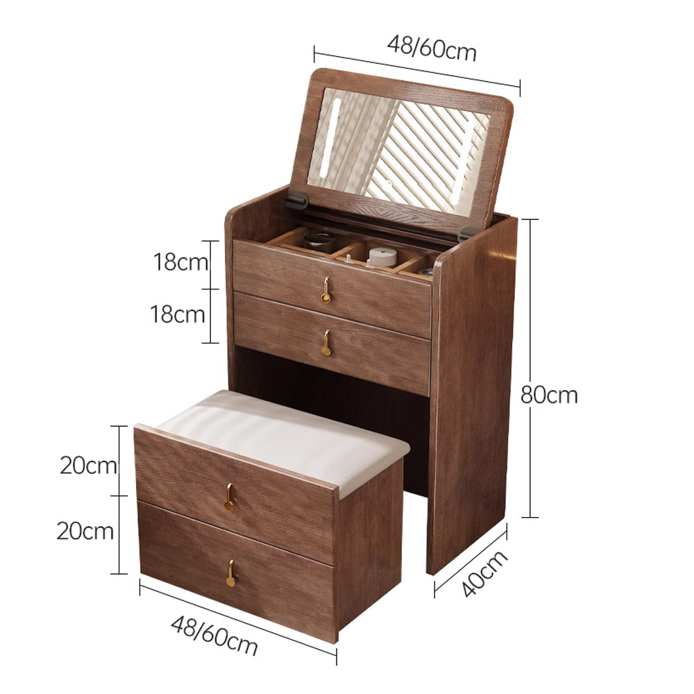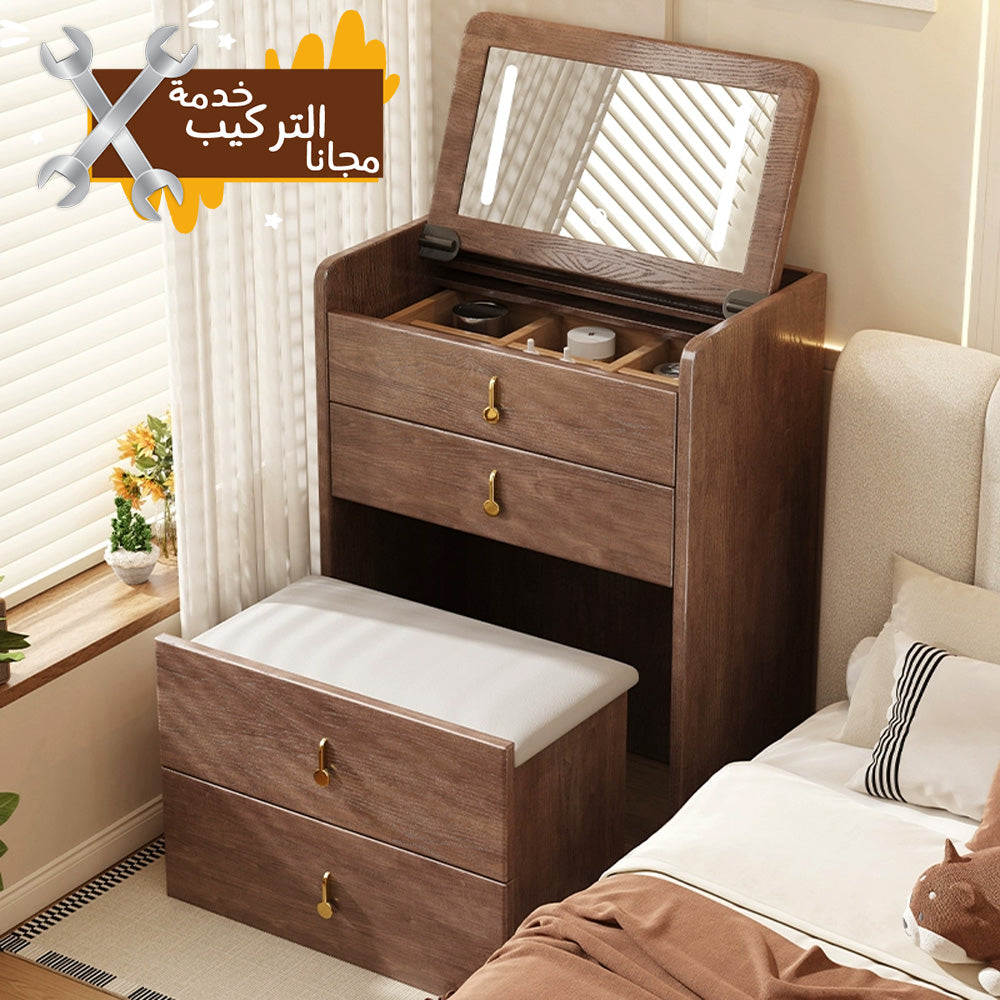 الكلمات المفتاحية: خزانة خشبية مع مرآة، طاولة زينة مع تخزين، أثاث غرفة نوم، منضدة زينة صغيرة، خزانة متعددة الاستخدامات.