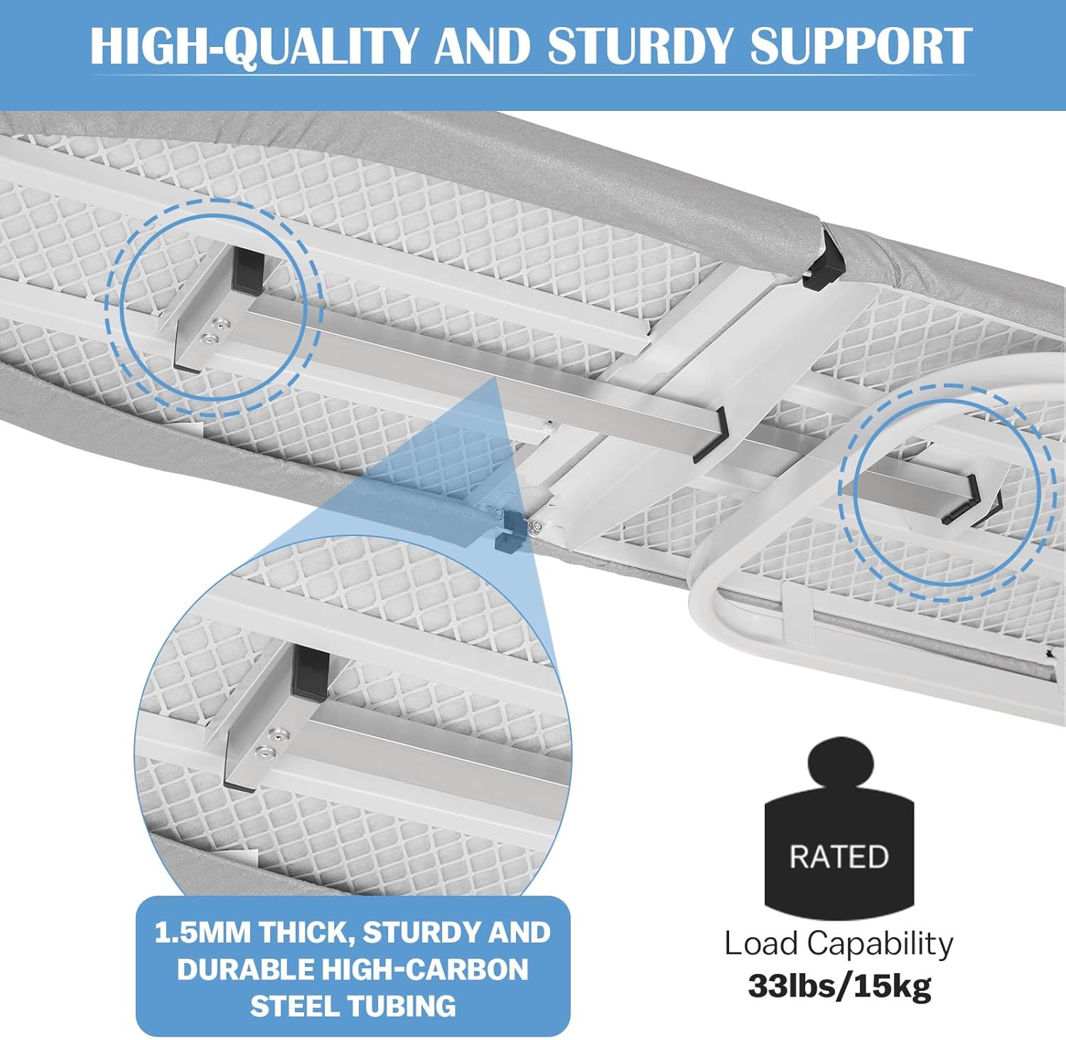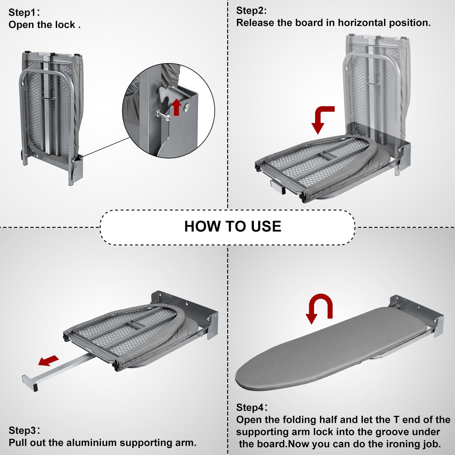 - 【تستخدم على نطاق واسع】طاولة الكي سهلة التركيب وموفرة للمساحة، مما يجعلها مثالية لغرف الغسيل وغرف النوم والشقق، تلبي احتياجاتك دون عناء حتى في الأماكن