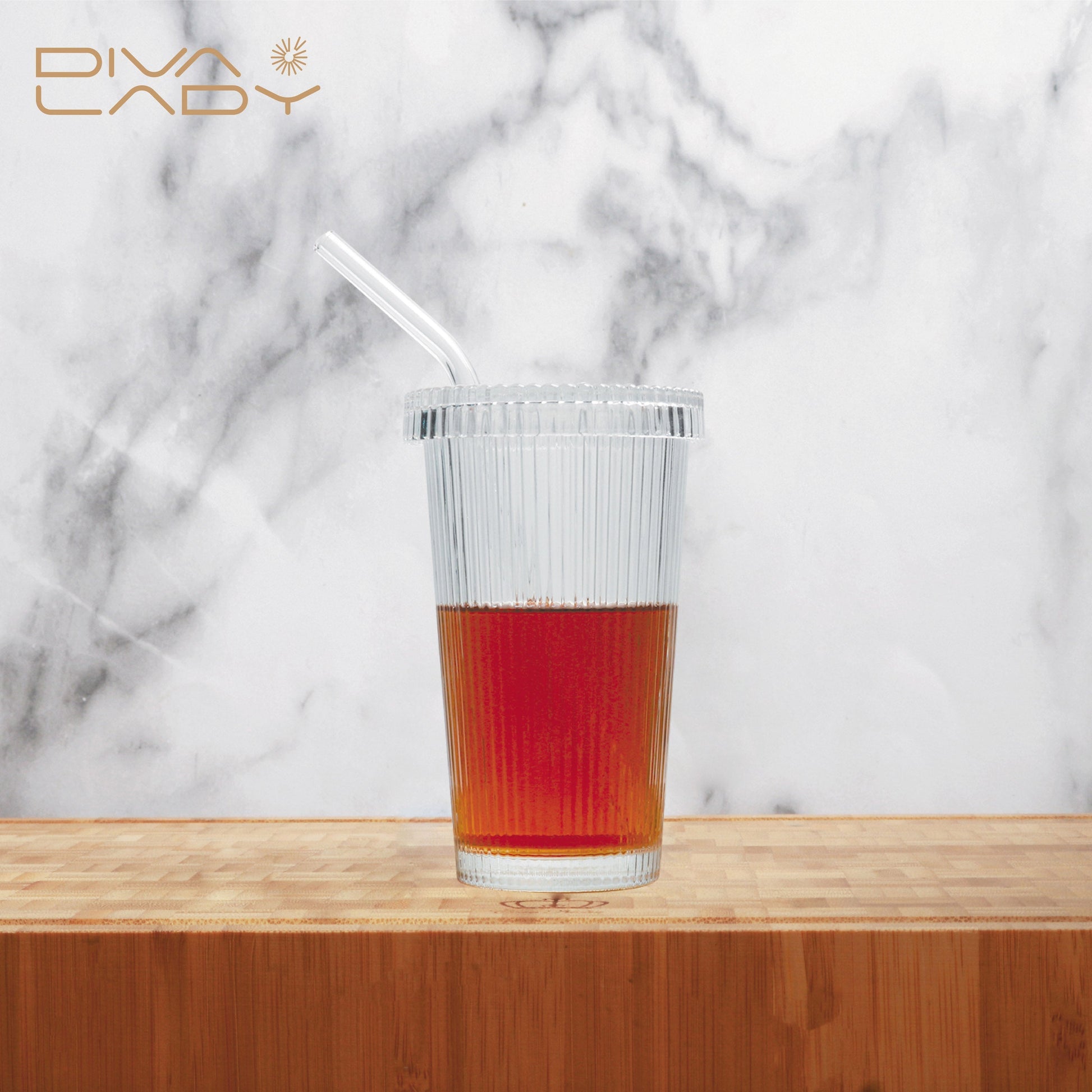 كوب زجاج مقاوم للحرارة مغ غطاء زجاجى يستخدم للمشروبات الباردة والساخنة