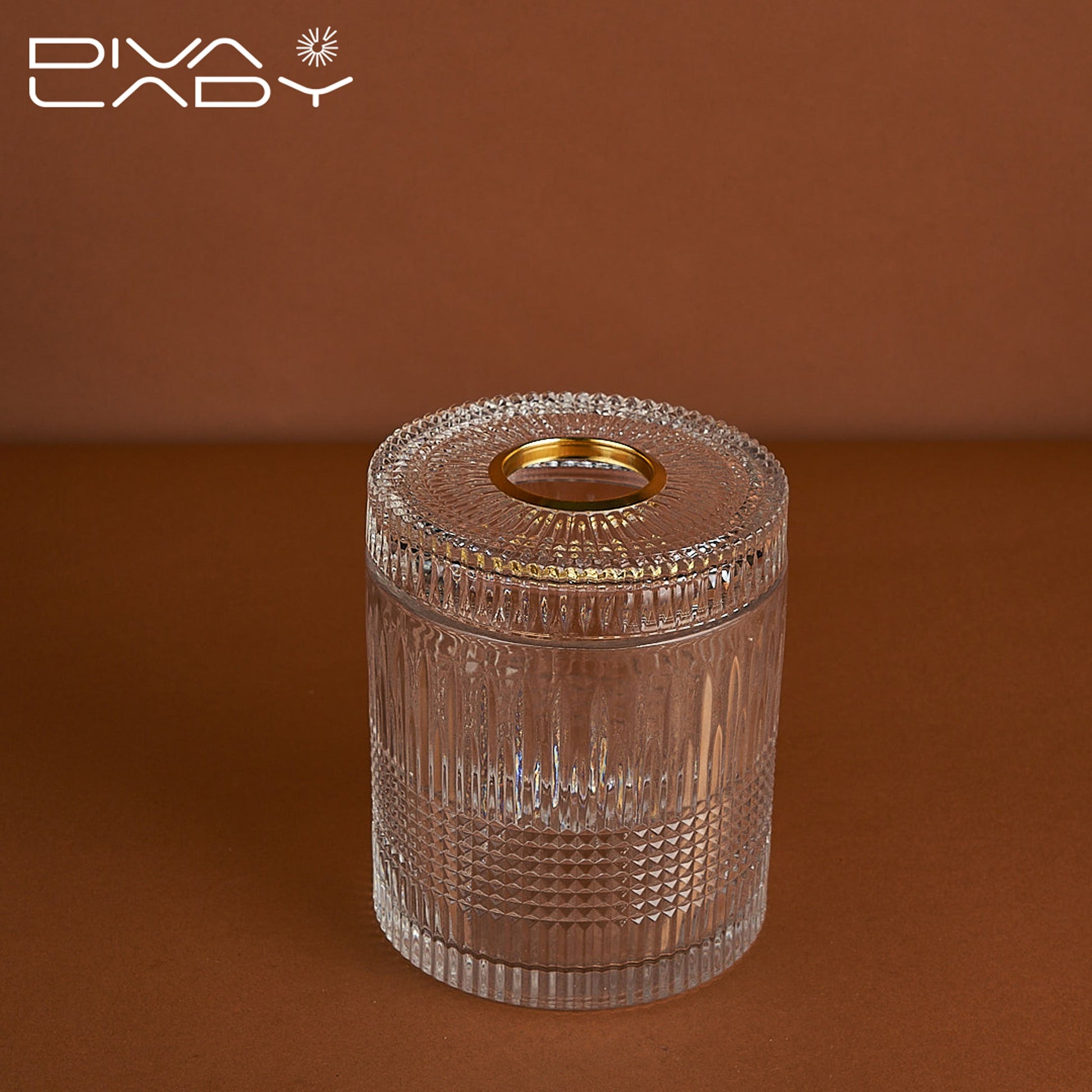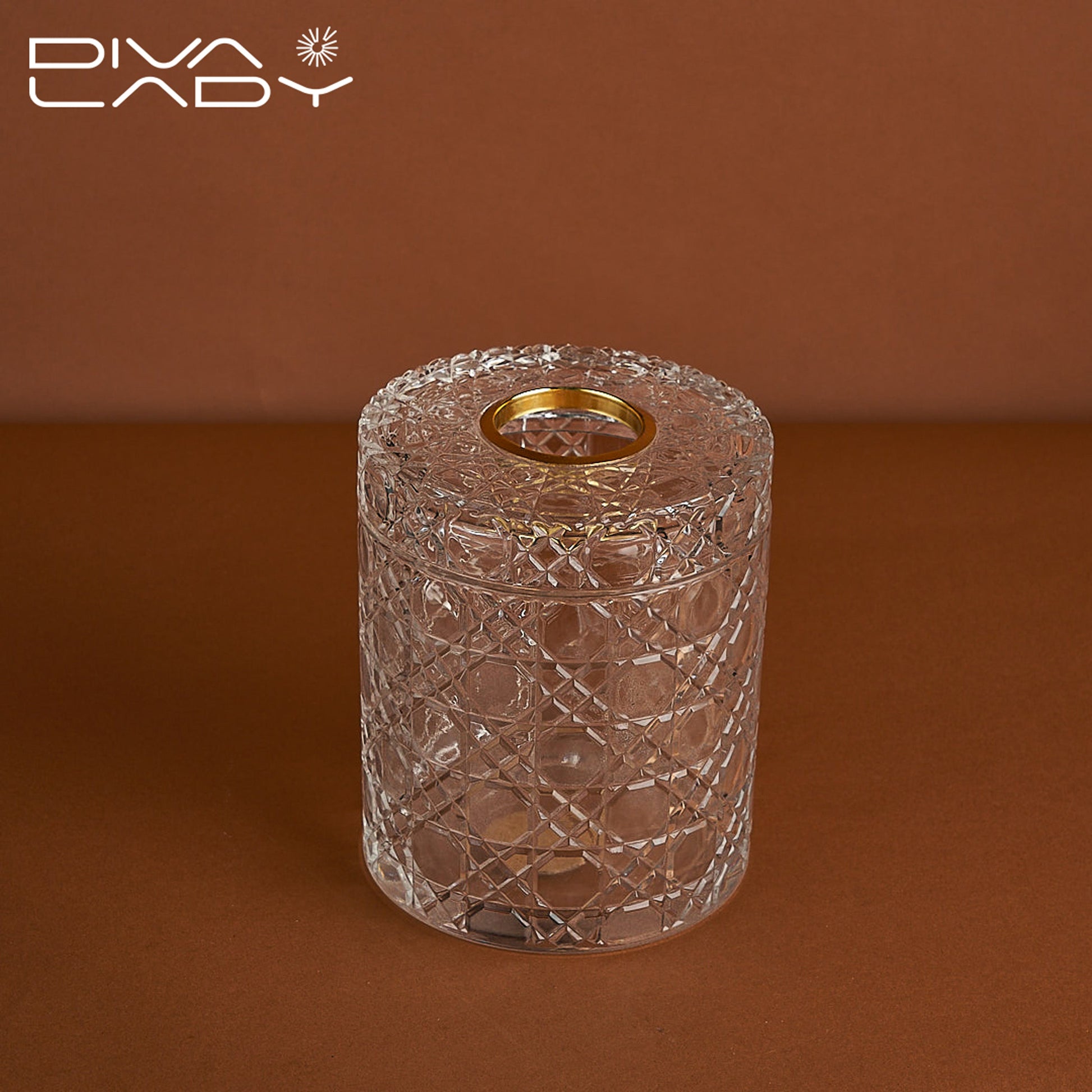 علبة الكلينكس الظاهرة في الصورة مصنوعة من الزجاج الشفاف، بتصميم أنيق وزخارف هندسية ونقوش بارزة تعطيها مظهرًا فخمًا وكلاسيكيًا. شكلها مستطيل مع فتحة علوية بيضاوية لإخراج المناديل بسهولة. تتميز بجوانب مزخرفة بتفاصيل متقنة تشبه النقوش الكريستالية، مما يضيف لمسة فاخرة تناسب الأماكن الأنيقة مثل المكاتب والصالات الفخمة