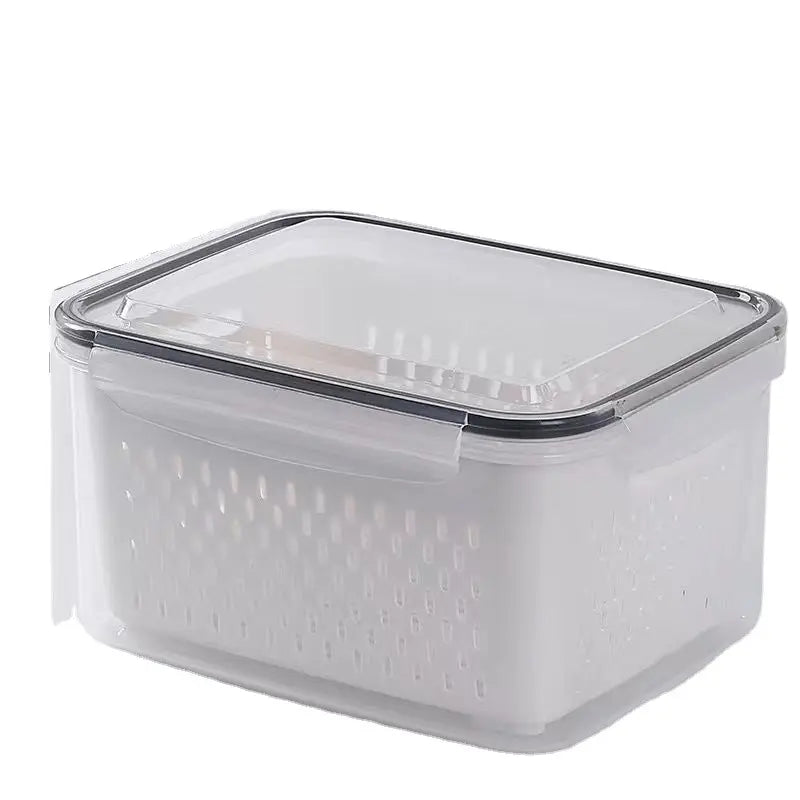 * سلة تصريف مدمجة: تحتوي كل علبة على سلة تصريف مدمجة تساعد على فصل السوائل عن الطعام ، مما يحافظ على الطعام طازجًا لفترة أطول.