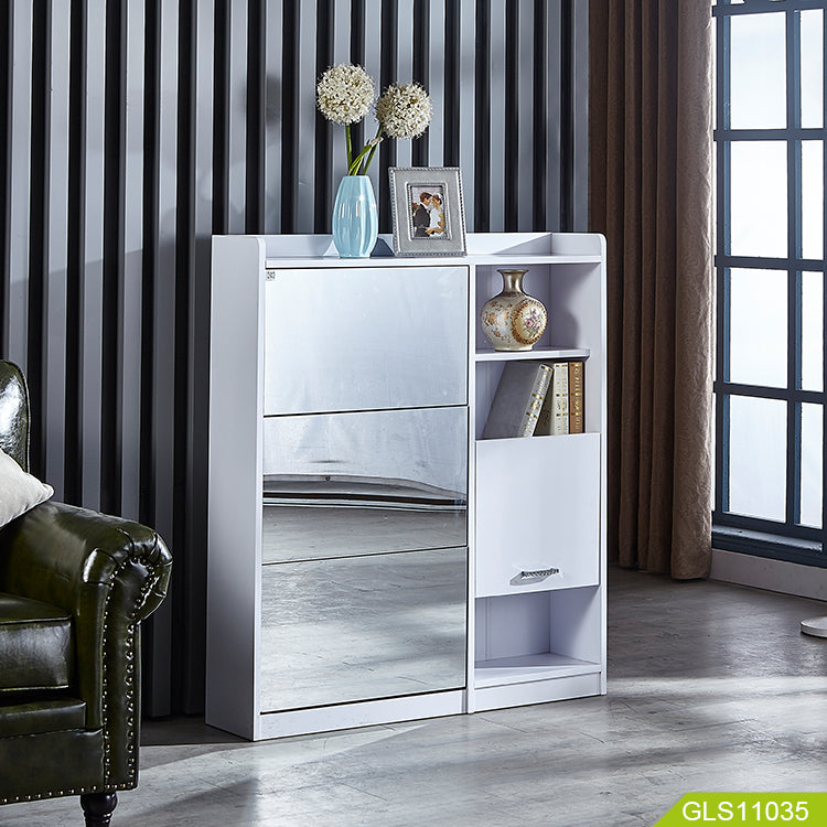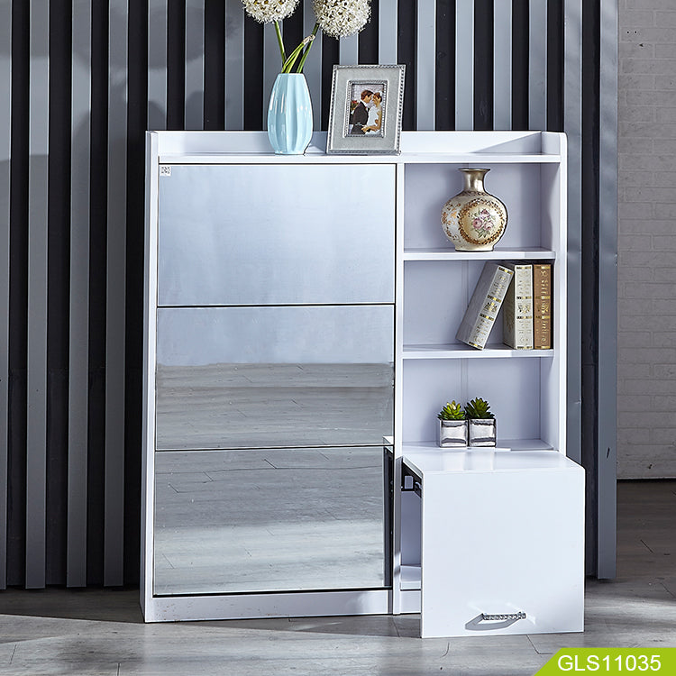 خزانة تخزين أحذية خشبية مع مرآة ومقعد قابل للطي – تصميم ذكي من بوكس برو