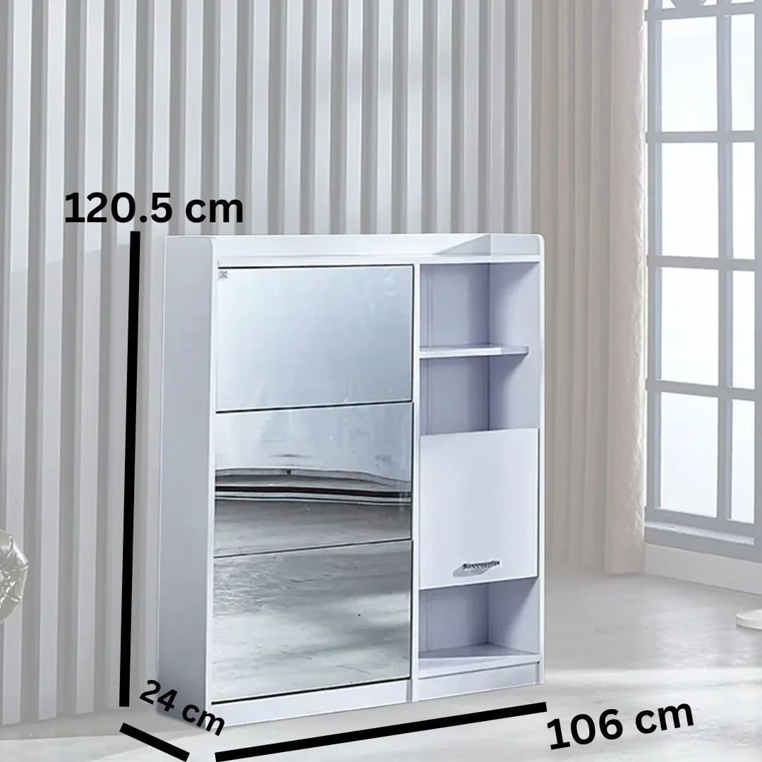اجمع بين الراحة والأناقة مع خزانة الأحذية الخشبية من بوكس برو، المصممة لتلبية احتياجاتك اليومية بطريقة عملية وراقية. تتميز بمرآة مدمجة بحجم مناسب، ومقعد قابل للطي لارتداء الأحذية بسهولة، مع مساحة تخزين منظمة وعصرية.