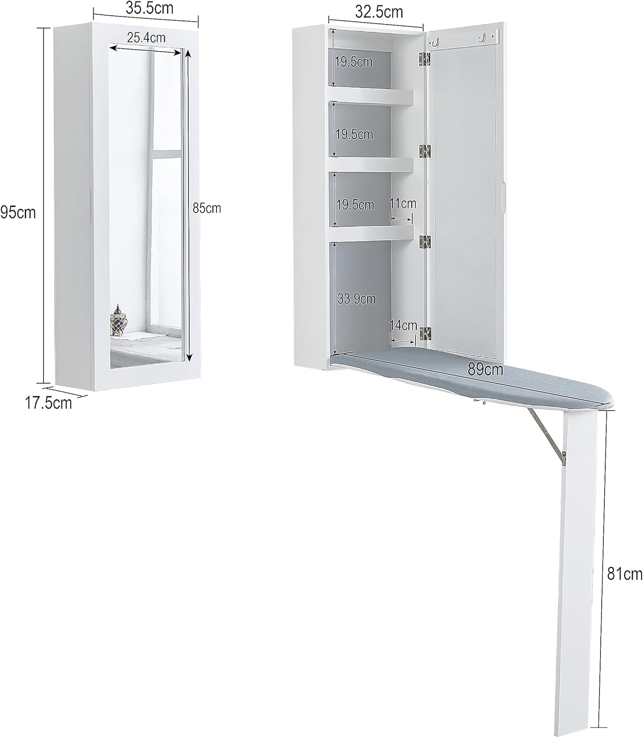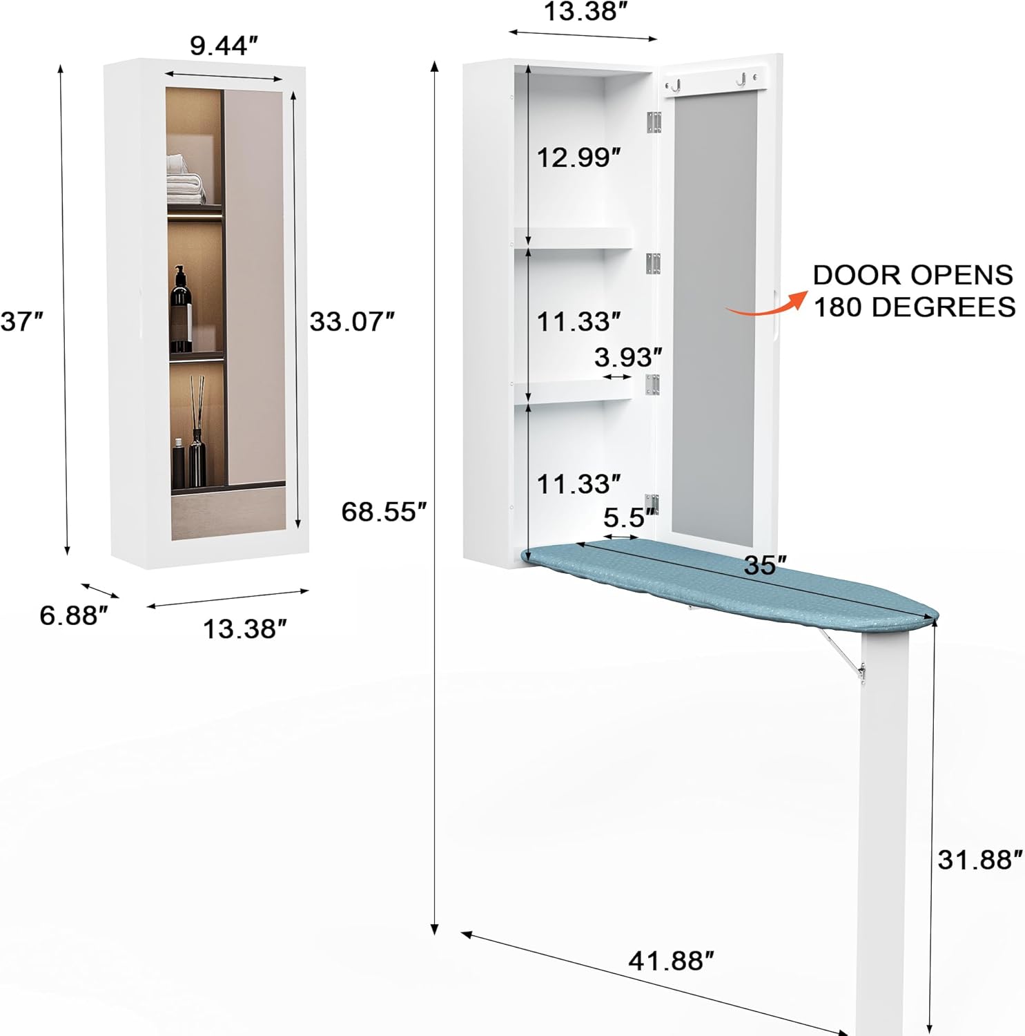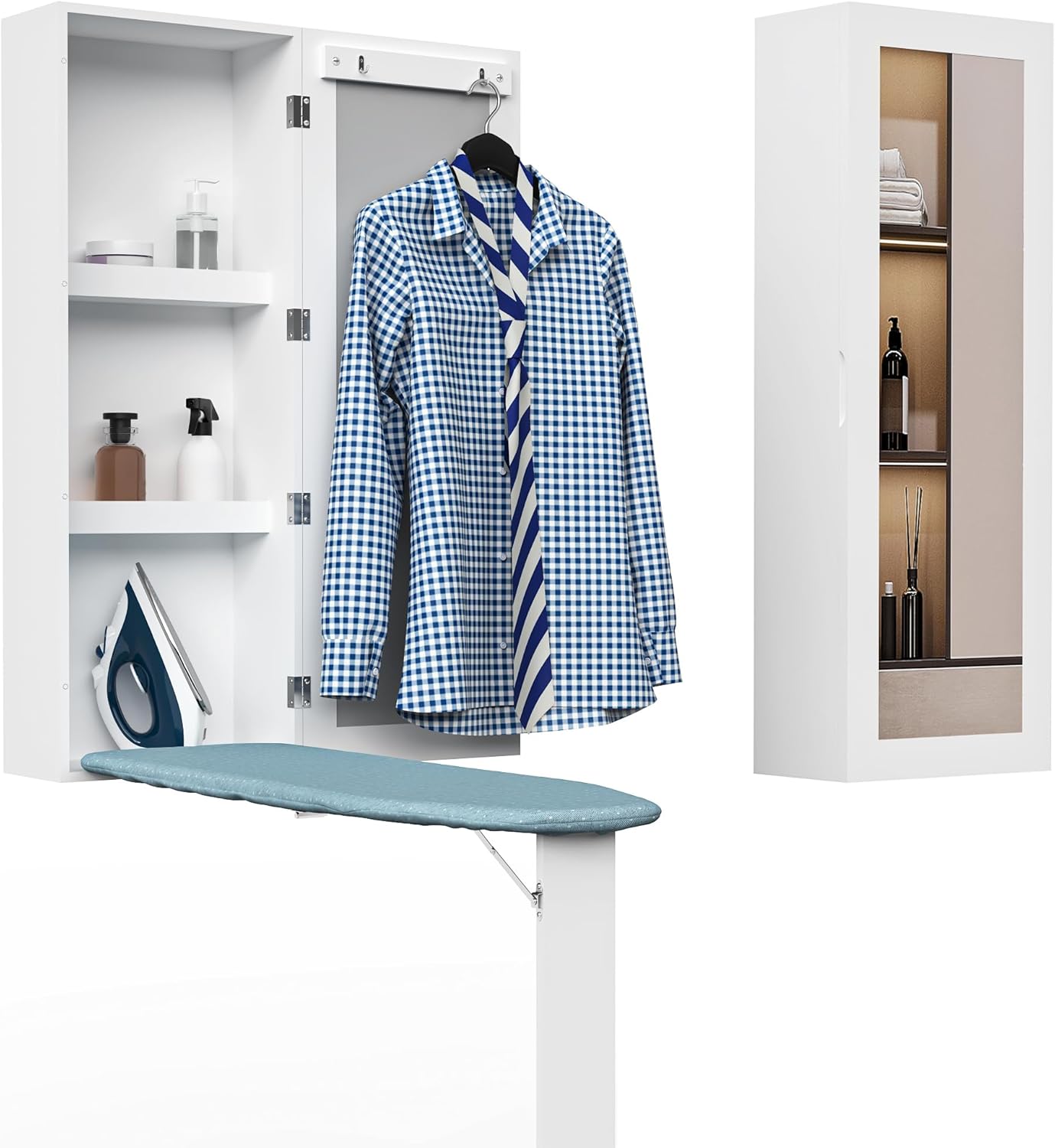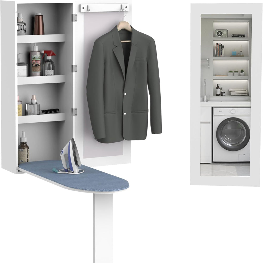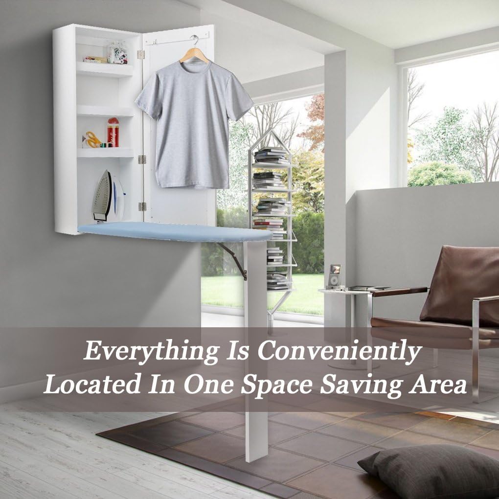 - [Great for Small Space]: محطة الكي هذه هي مزيج رائع من طاولة الكي كاملة الحجم والخزانة والمرآة. يمكن تعليقه على الحائط في غرفة الغسيل وغرفة الخياطة وغرفة النوم والخزانة. يضيف العملية والتخزين والتنظيم إلى المنزل