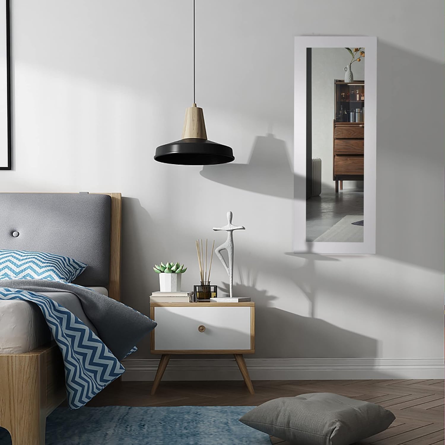 لوح كي مُركب على الحائط مُنظم مع خزانة تخزين ومرايا ، تصميم موفر للمساحة ، سهل التركيب