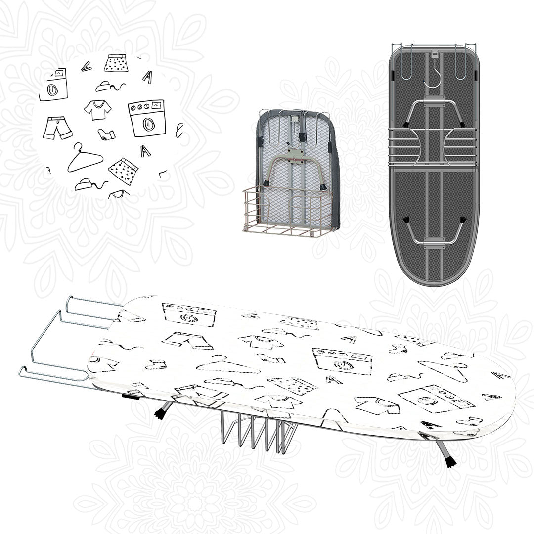 لوح كي قابل للطي مع حامل اوتي من إيلسو مع مساحة تخزين موفرة للمساحة مع خطاف تعليق مريح مع سلة