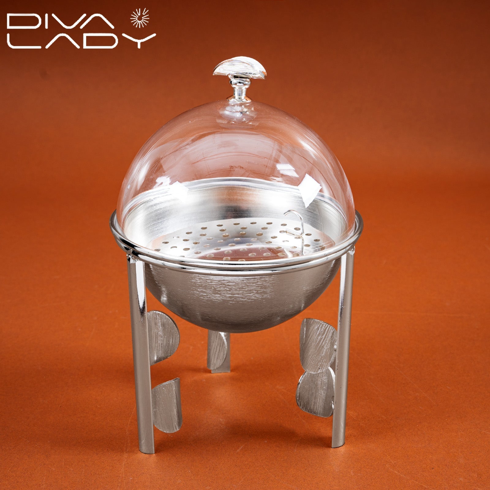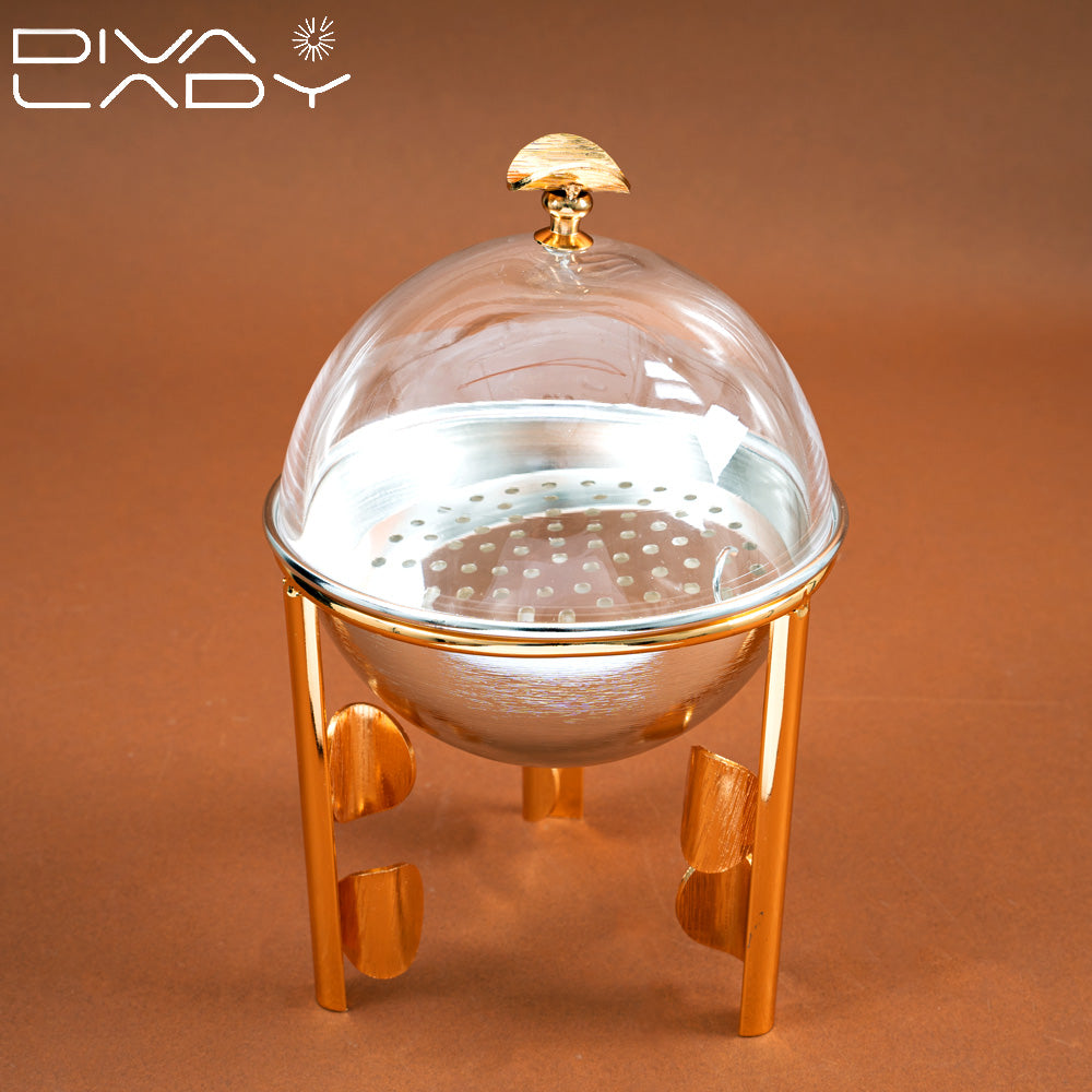 يستخدم هذا الماعون لتقديم الأطعمة والحلويات بشكل جذاب خاصةً تلك التي تحتاج للحفاظ عليها دافئة أو منعها من الجفاف يمكن استخدامه لتقديم الكعك الحلويات الشرقية و الفواكه يتميز بتصميم أنيق يجمع بين الطراز الكلاسيكي والحديث مما يجعله مناسبًا للعديد من المناسبات