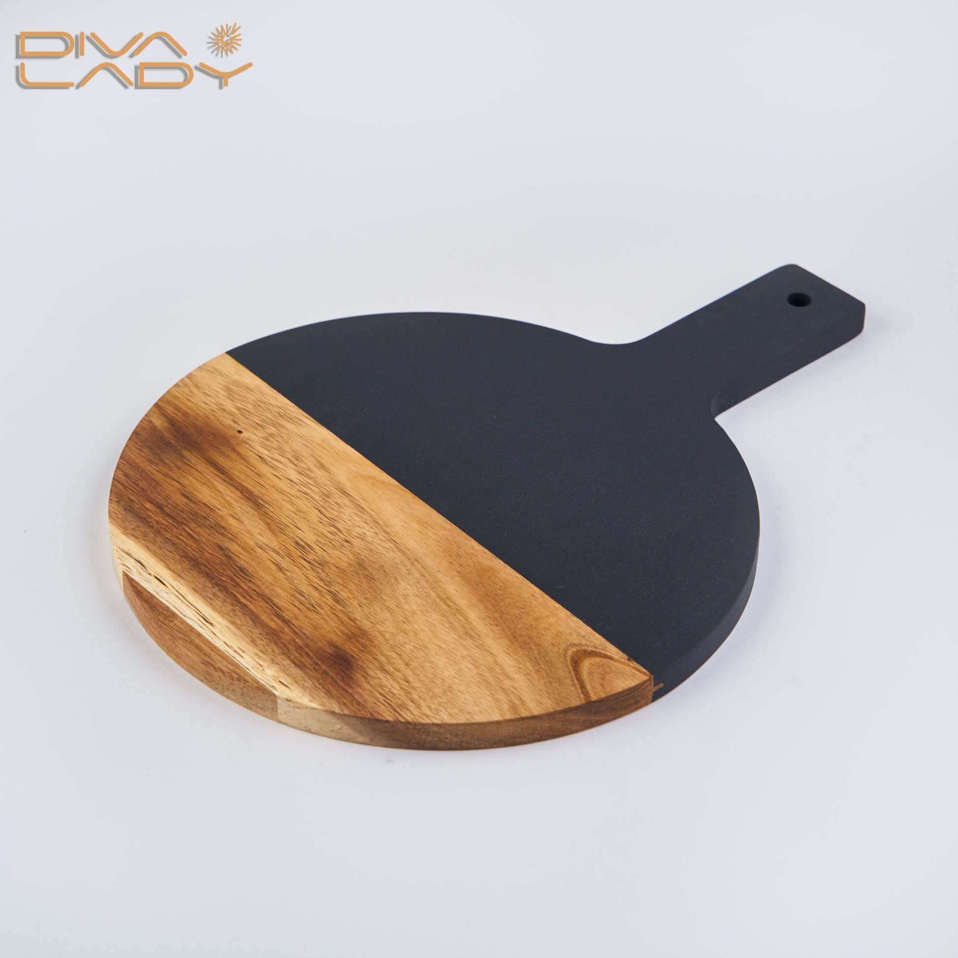 أضف لمسة من الأناقة والرقي إلى جلسات الضيافة والمناسبات الخاصة مع لوح التقديم الخشبي المزدوج الألوان من Diva Lady. يتميز هذا اللوح بتصميم عصري يجمع بين جمال الخشب الطبيعي الدافئ واللون الأسود المطفي الأنيق، مما يجعله قطعة فنية مميزة على طاولة التقديم.