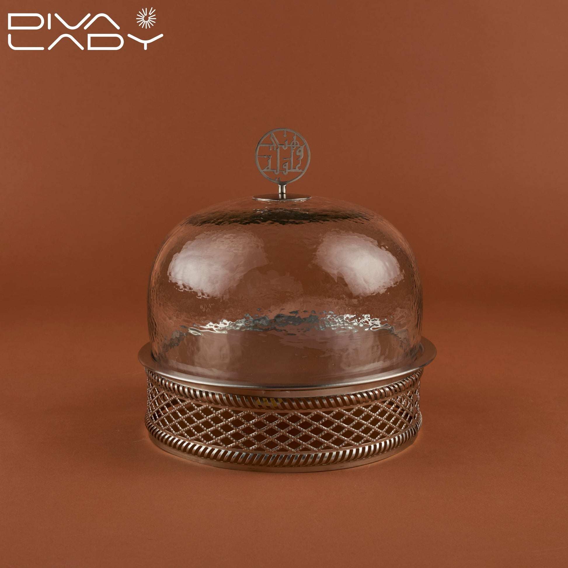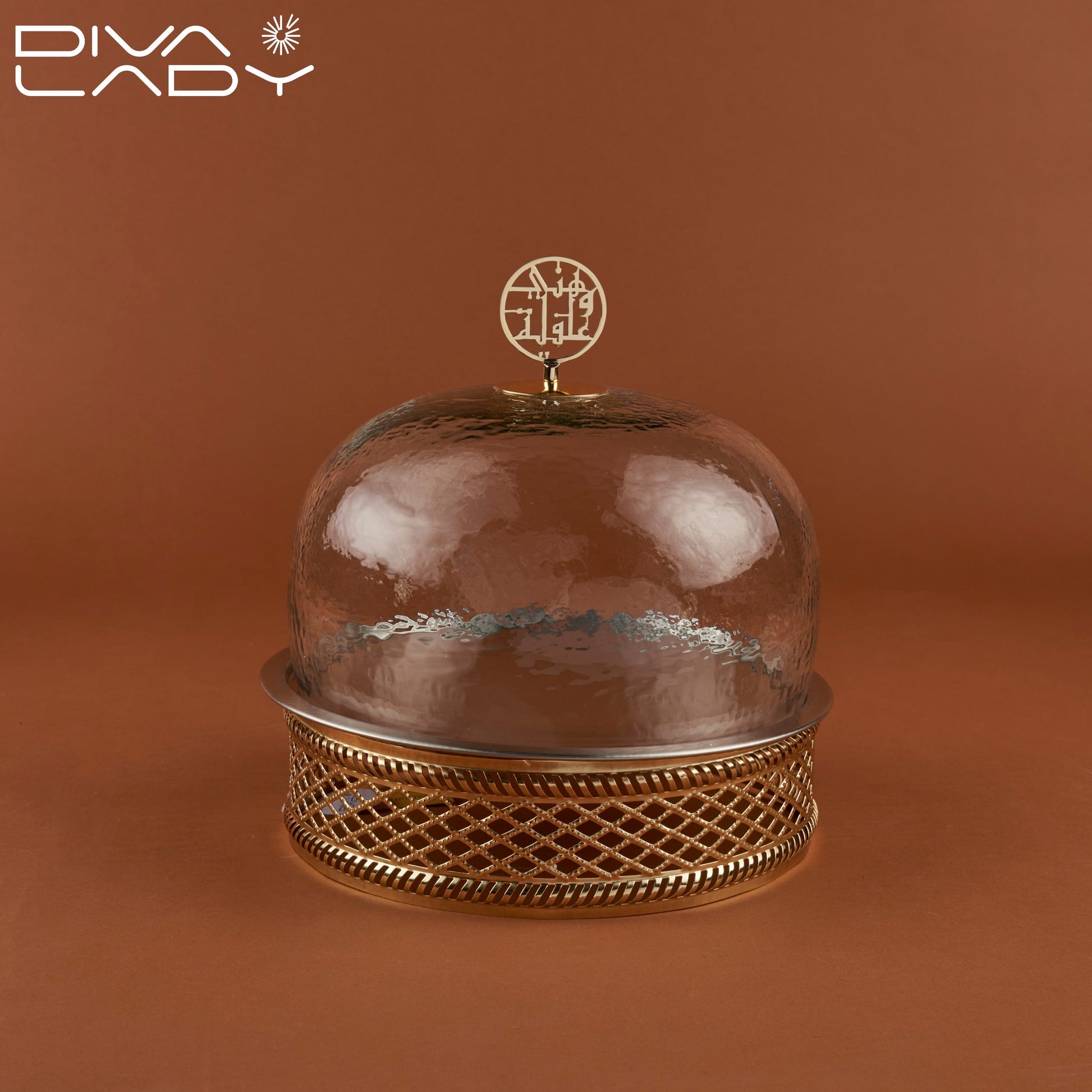 يستخدم هذا الماعون لتقديم الأطعمة والحلويات بشكل جذاب خاصةً تلك التي تحتاج للحفاظ عليها دافئة أو منعها من الجفاف يمكن استخدامه لتقديم الكعك الحلويات الشرقية و الفواكه يتميز بتصميم أنيق يجمع بين الطراز الكلاسيكي والحديث مما يجعله مناسبًا للعديد من المناسبات