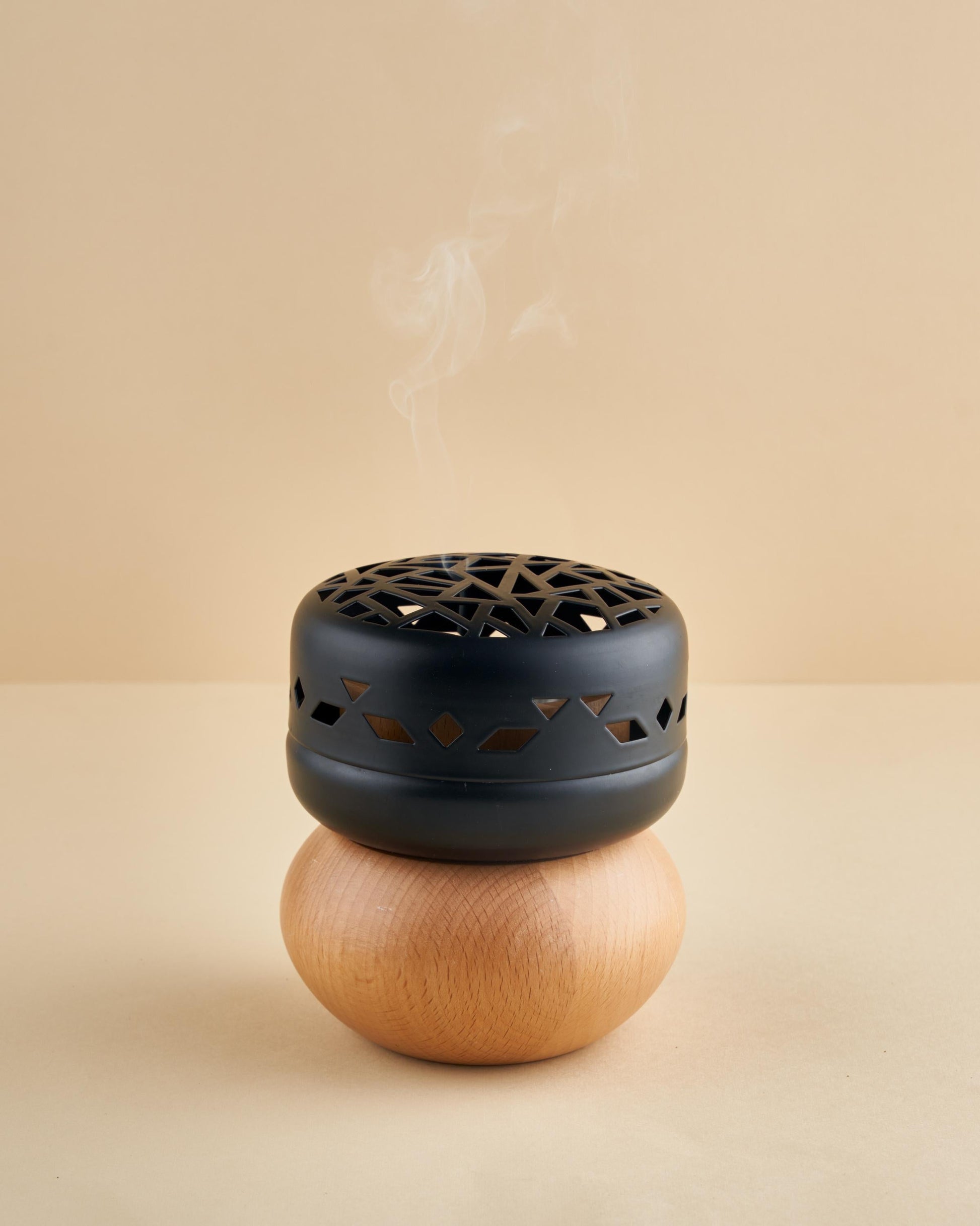 تصميم أنيق وعصري يجمع المبخر بين التصميم البسيط والأنيق مما يجعله مناسبًا لمعظم الديكورات الداخلية , القاعدة مصنوعة من الخشب مما يضفي عليه مظهرًا طبيعيًا ودافئًا