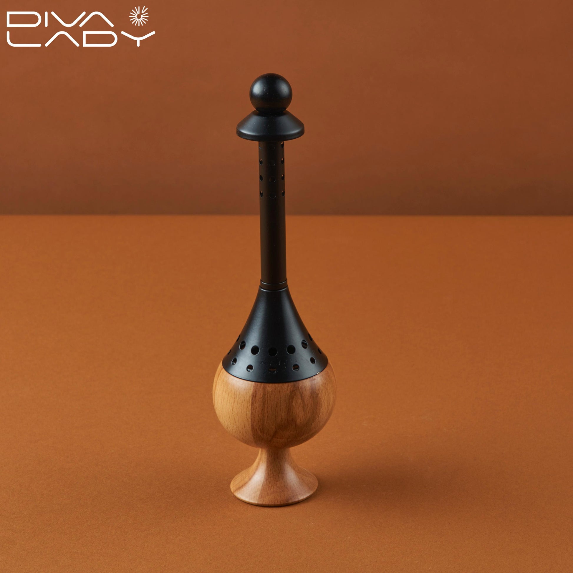 يتميز المبخر بتصميم أنيق وعصري يجمع بين الخشب والمعادن مما يضفي عليها مظهرًا طبيعيًا ودافئًا