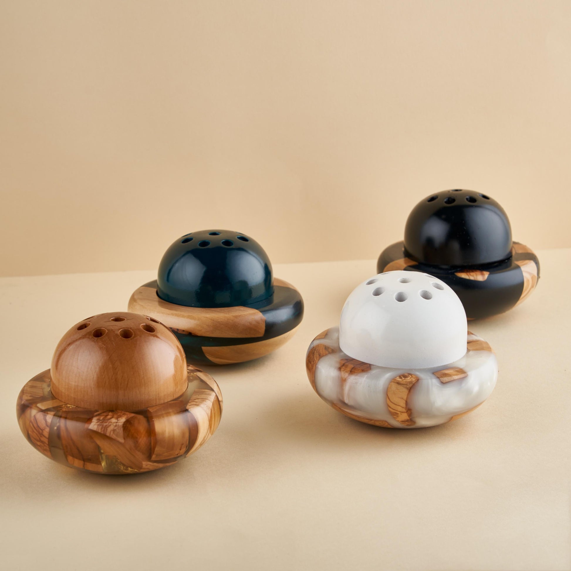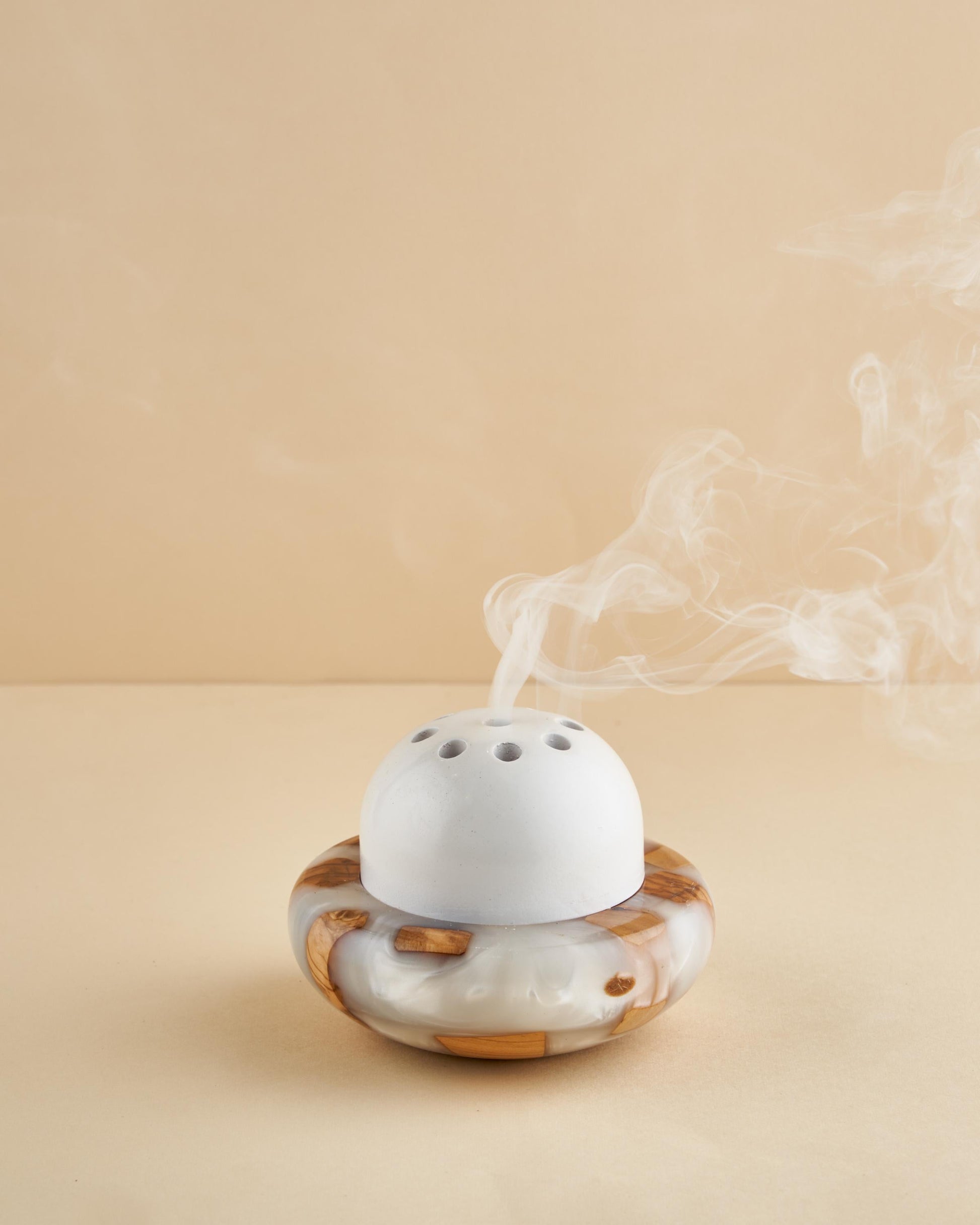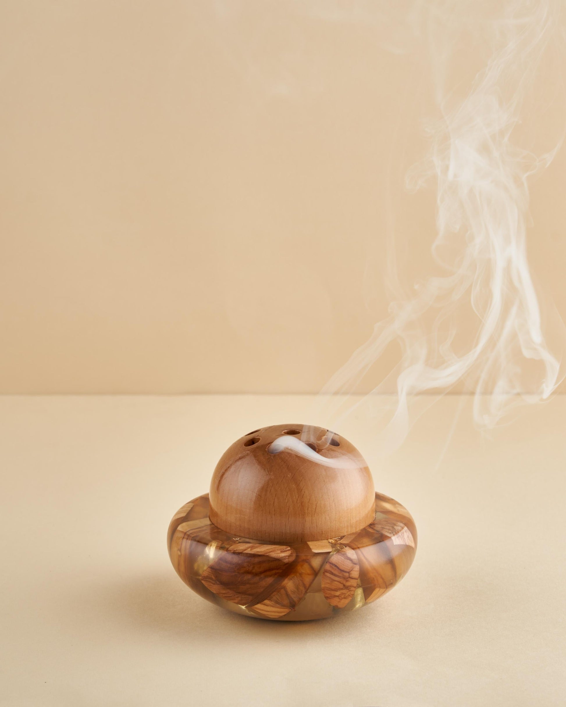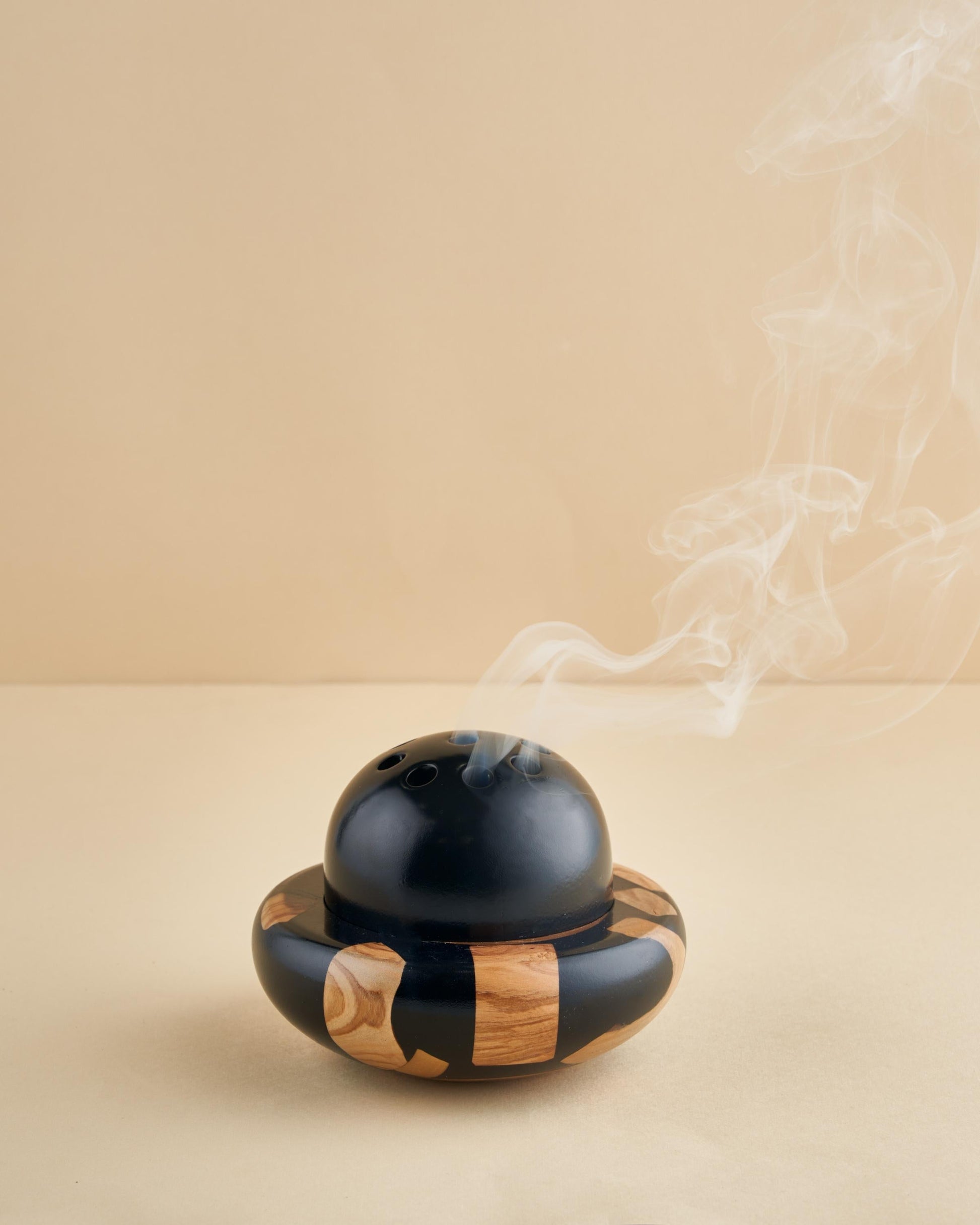 يتميز التصميم بالدقة والاهتمام بالتفاصيل فالقاعدة العلوية تحتوي على فتحات صغيرة متعددة والتي تستخدم لوضع البخور أو الفحم أما القاعدة السفلية فهي مصقولة بشكل جيد مما يعطي المبخرة مظهرًا أنيقًا