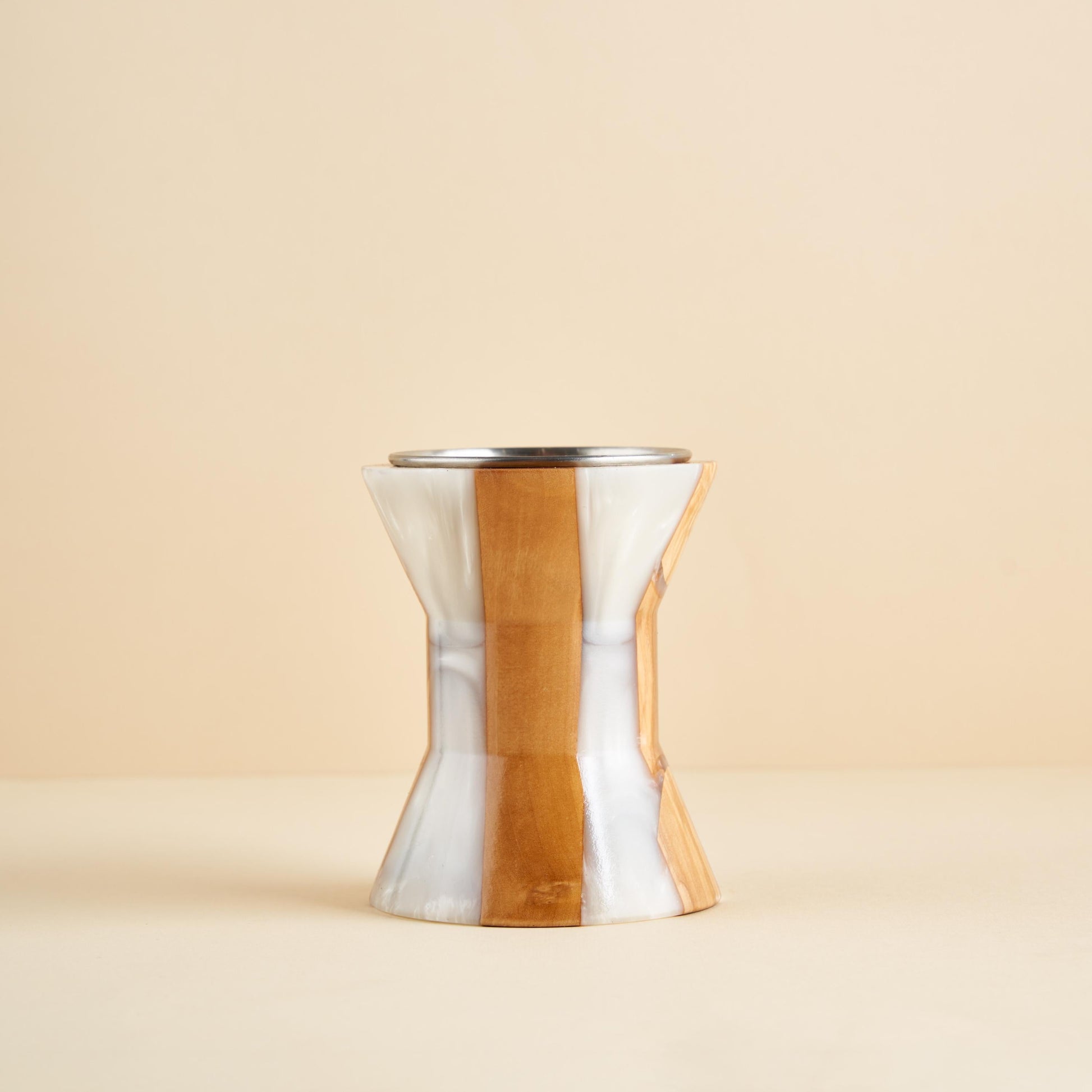 يتميز المبخر بتصميم عصري وأنيق، حيث تجمع بين الخشب والراتنج الشفاف