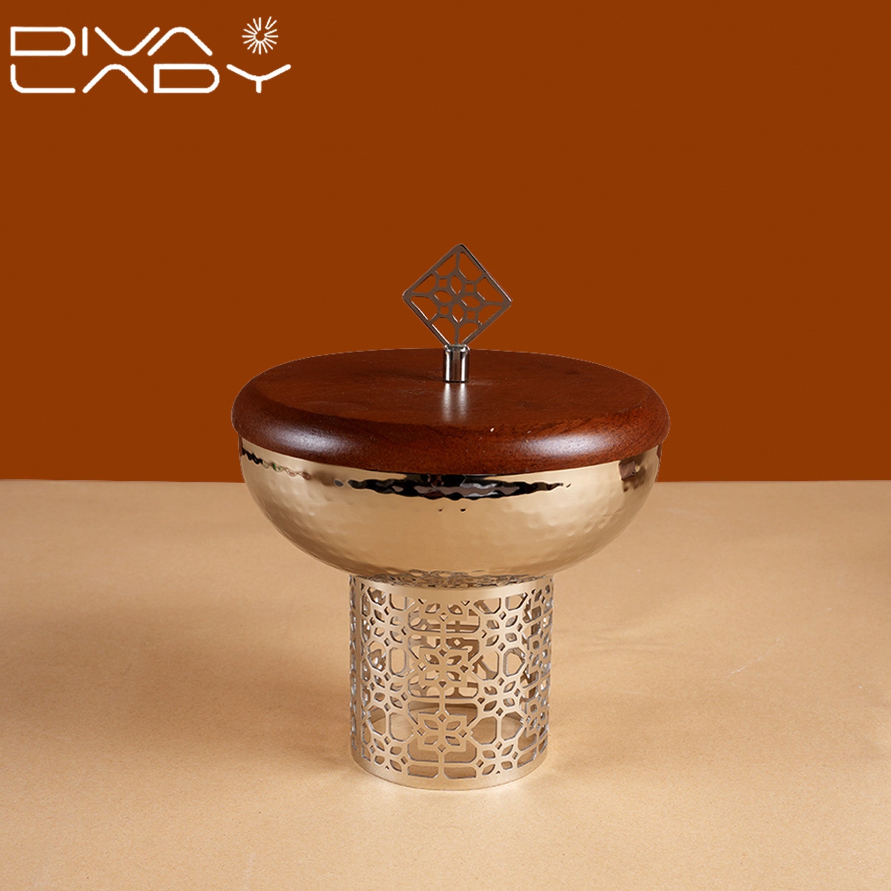 الغطاء: دائري الشكل أيضًا ويتوج بقبضة زخرفية تمنحه مظهرًا فاخرًا