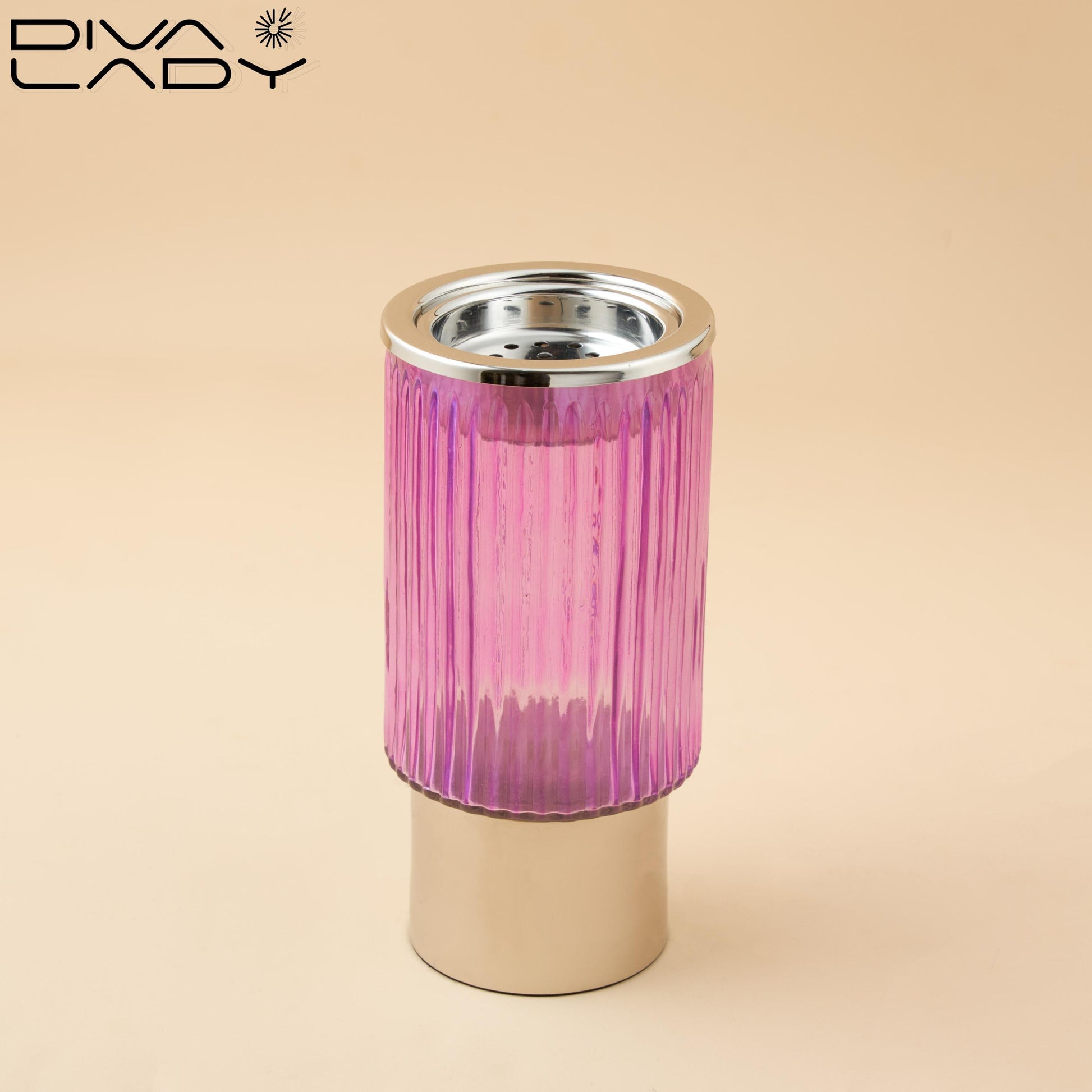 يتميز المبخر بتصميم فريد مع خطوط عمودية أنيقة تعكس الضوء بشكل جميل. الحافة المعدنية تضيف لمسة من الرقي والأناقة