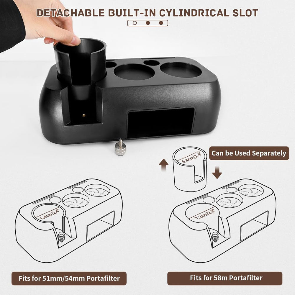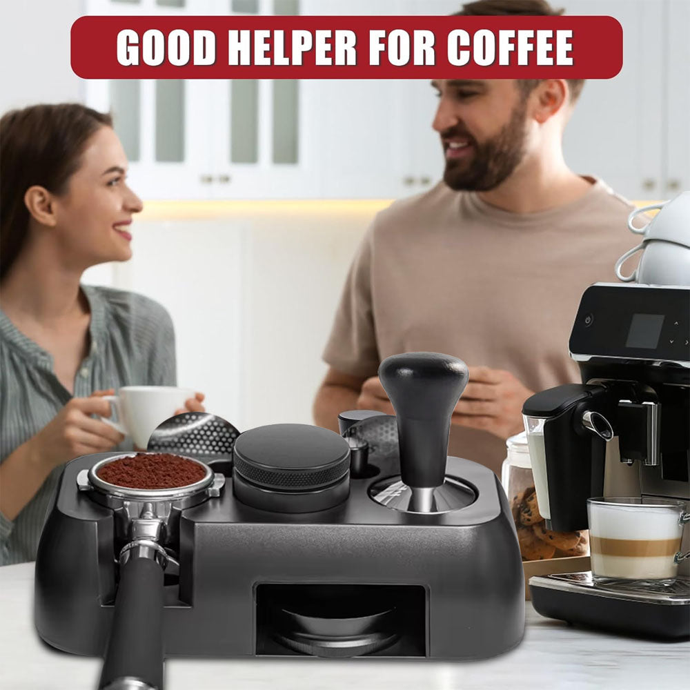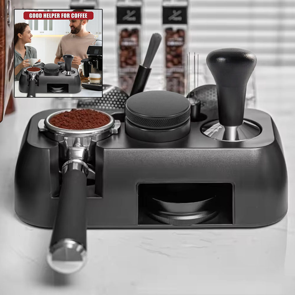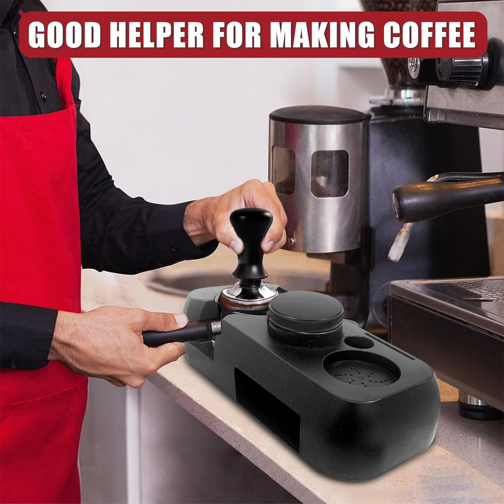 مادة منظم محطة الإسبريسو - مصنوع جيدًا من مادة أكريلونتريل بوتادين ستايرين، ومستقر ومتين. مع 4 أقدام مطاطية غير قابلة للانزلاق لضمان الثبات عند التشغيل. مواضع حامل المكبس/الموزع مع حصيرة سيليكون لحماية سطح أدوات القهوة الخاصة بك وتسهيل التنظيف.