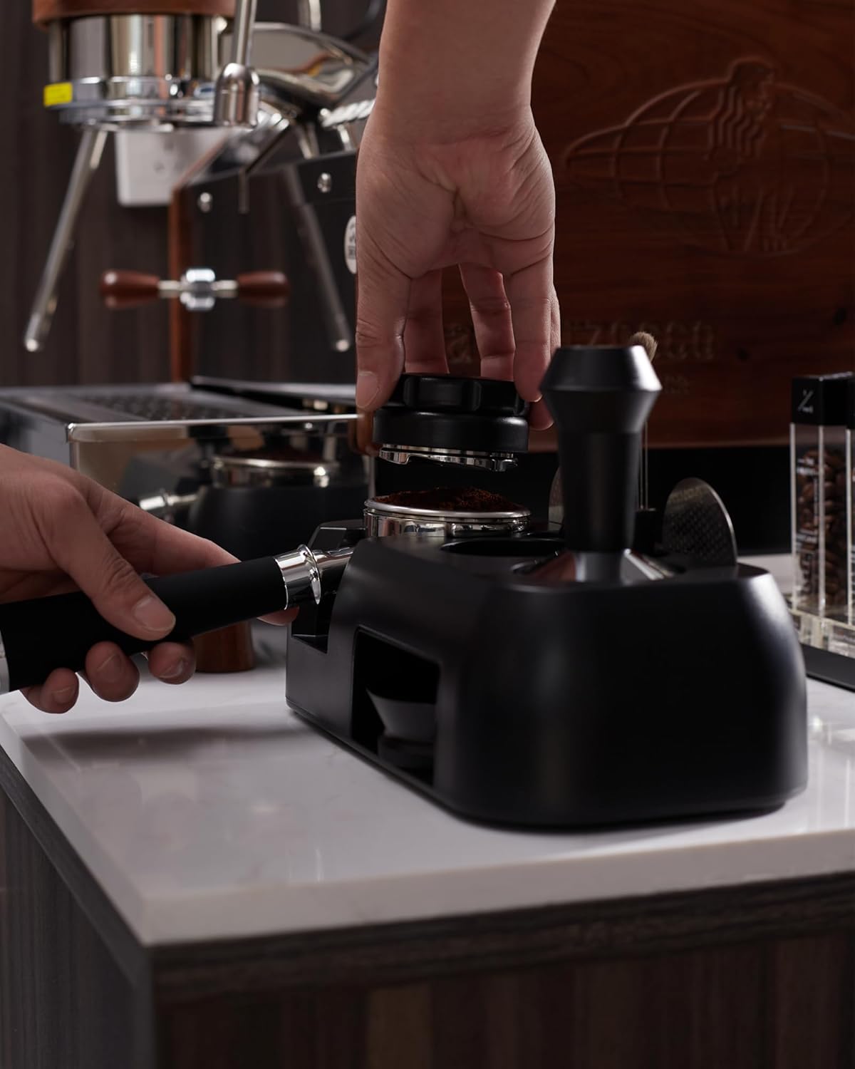 محطة ضغط الإسبريسو مع صامولة لولبية قابلة للتعديل الارتفاع - اضبط ارتفاع الصامولة لتتناسب مع مرشح القهوة الخاص بك تمامًا، وتأكد من الضغط أفقيًا وثابتًا.