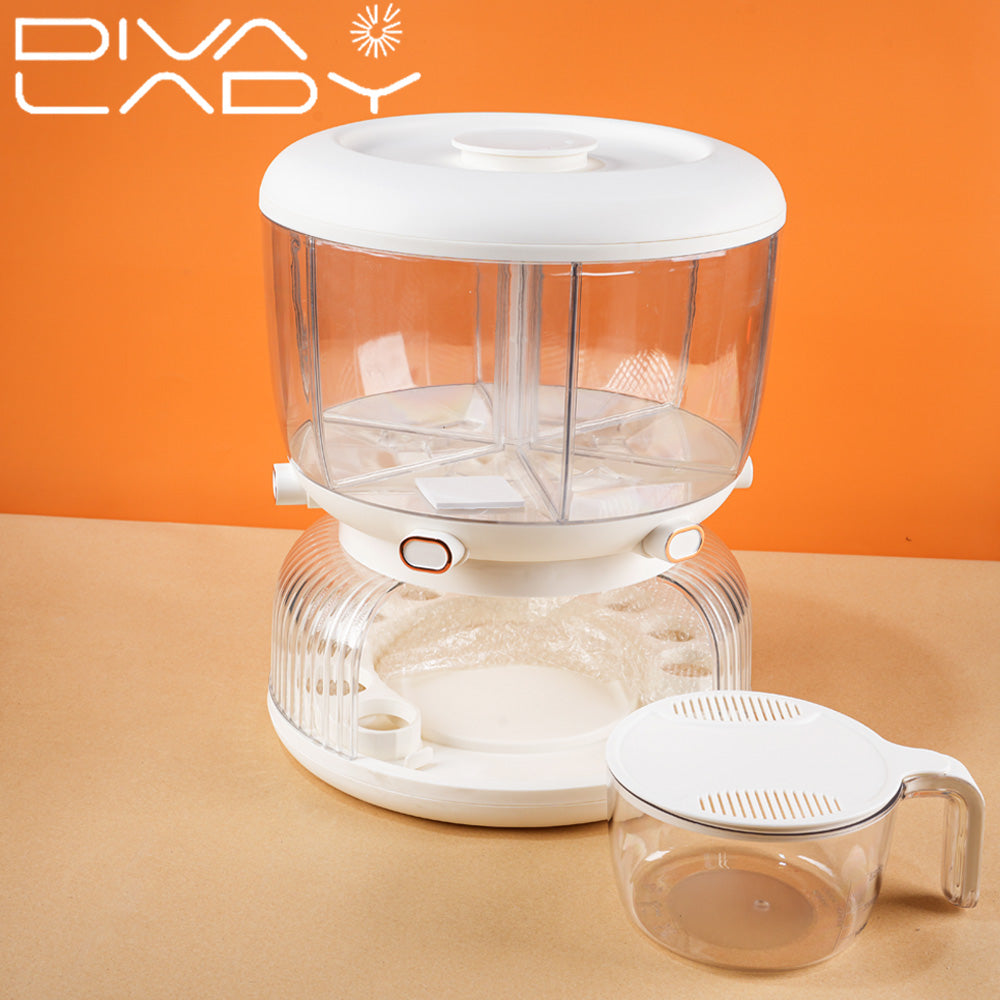 الجهاز مصمم لتخزين الارز مع وجود فتحة لتوزيعة بسهولة