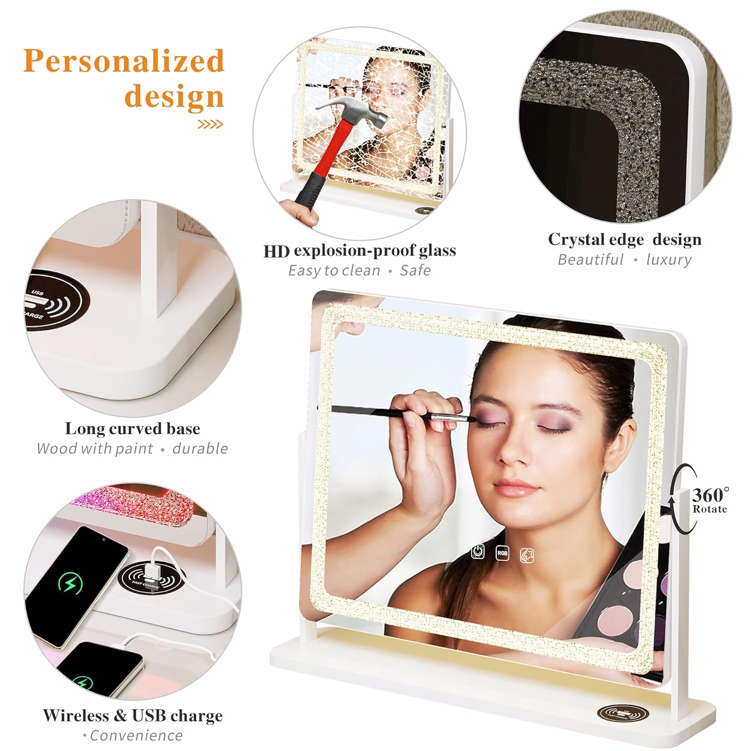 مرآة مكياج LED RGB مع 7 أوضاع قابلة للتعتيم