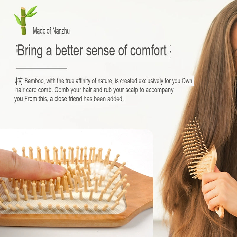 مشط وسادة هوائية مصنوع من الخيزران الطبيعي بتصميم أنيق وعملي. يتميز بوسادة هوائية مرنة تعمل على تدليك فروة الرأس بلطف وتفكيك تشابك الشعر بدون ألم أو تقصف. مناسب لجميع أنواع الشعر، ويُعد خيارًا صديقًا للبيئة بفضل مواده الطبيعية. مثالي للاستخدام اليومي ويضفي نعومة ولمعانًا على شعرك.