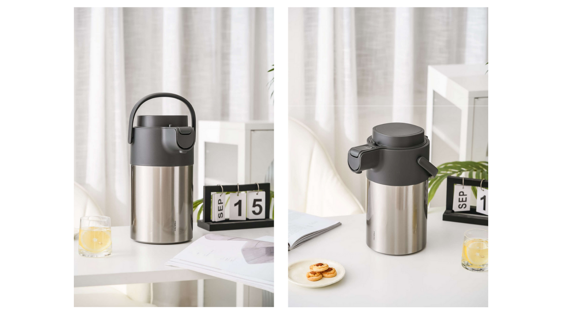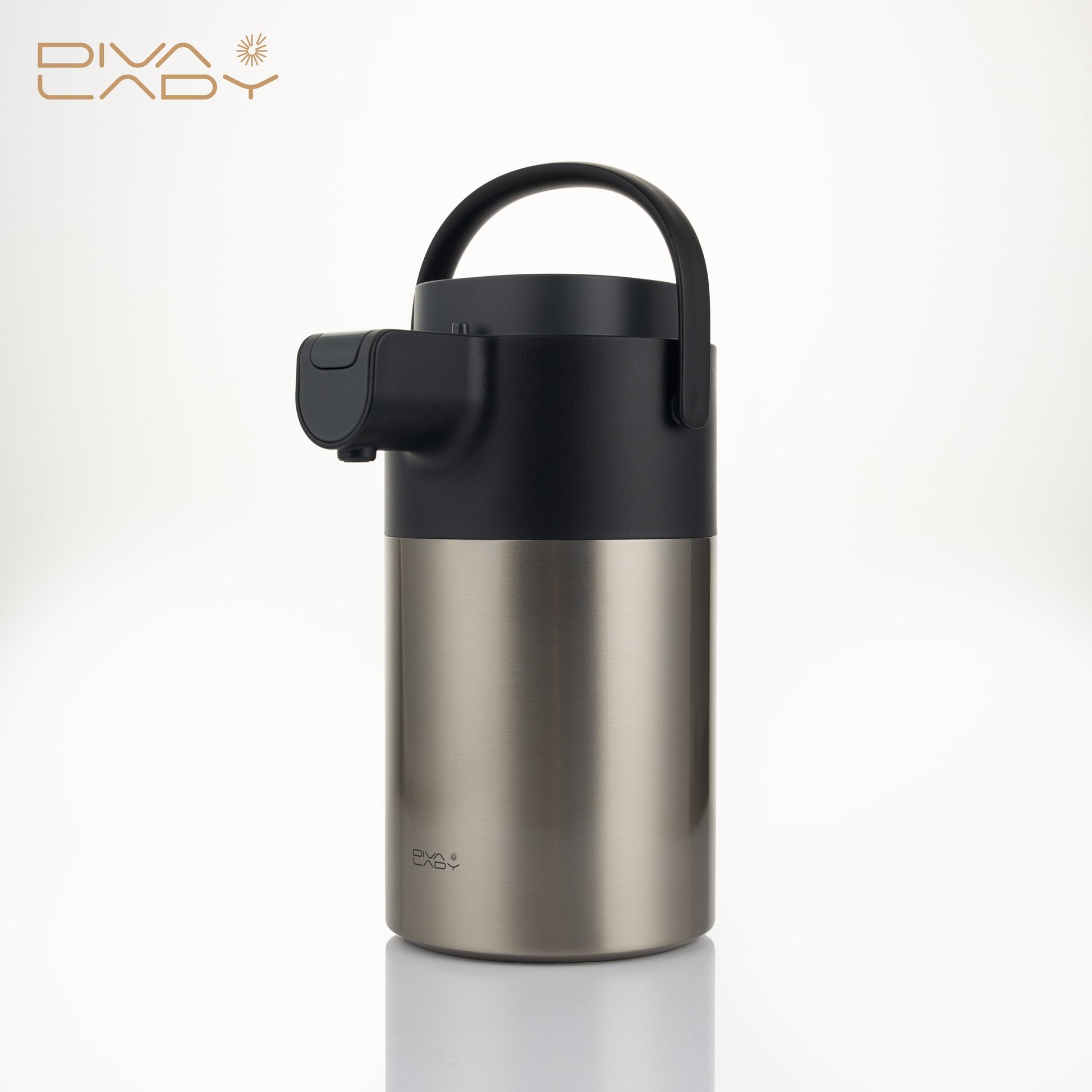 مطارة ضغط فاخرة للشاي والقهوة تضفي على طاولة الضيافة الخاصة بك لمساتٍ من الأناقة والرتابة. تأتي بتصميم مميز يحافظ للحرارة لمدة طويلة تدوم حتى 12 ساعة على الأقل - لتستمع