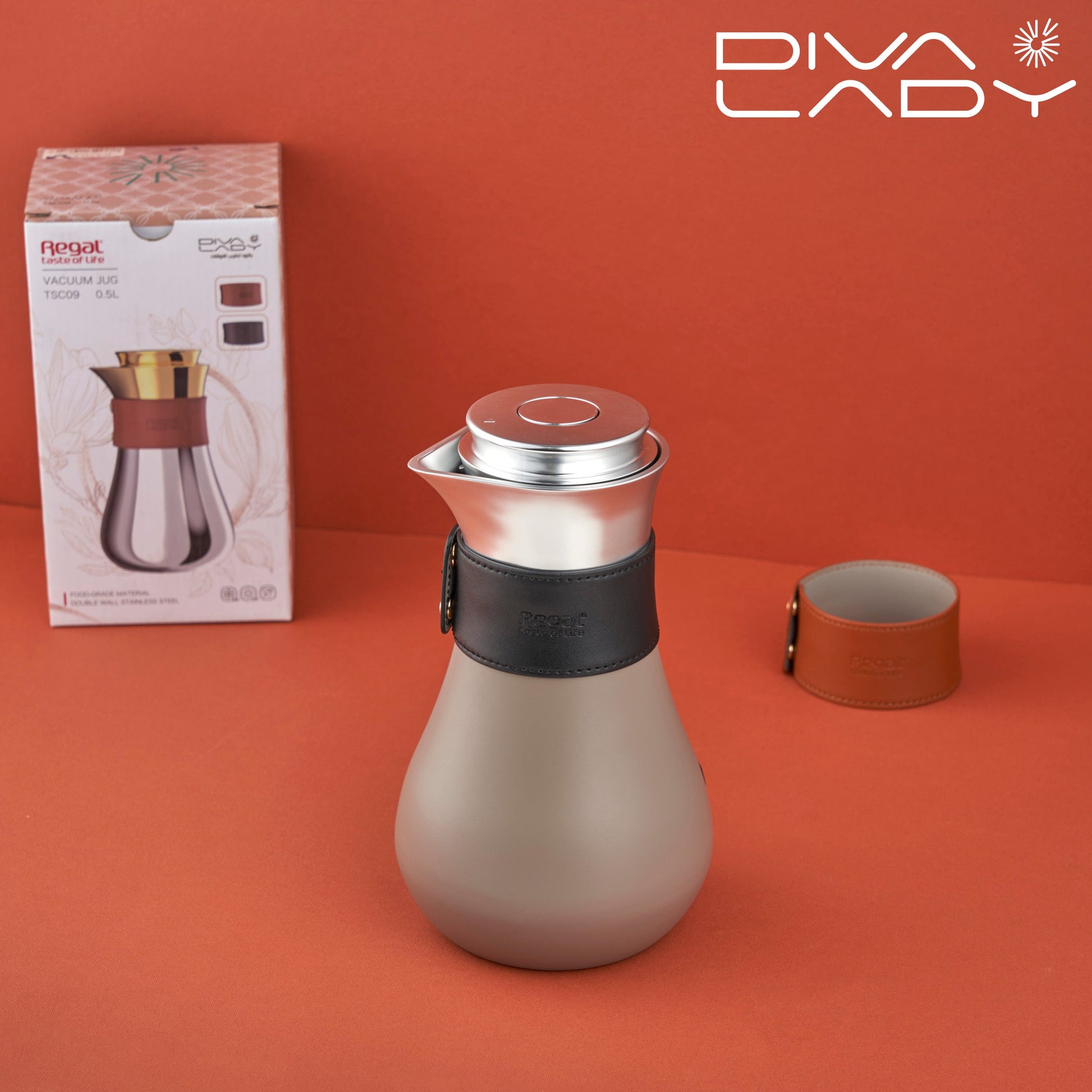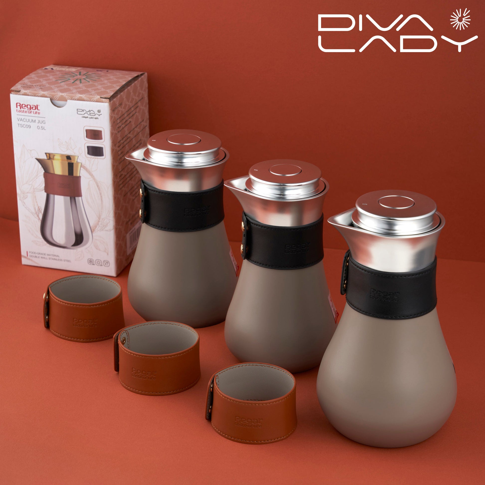 مطارة ريقال للشاي والقهوة مزدوجة الجدار مثالية للاستخدام المنزلي أو الاستخدام الرسمي أو في أي مكان بتصميم أنيق مطلي بلون كلاسيكي بتصميم مريح وزر السلامة