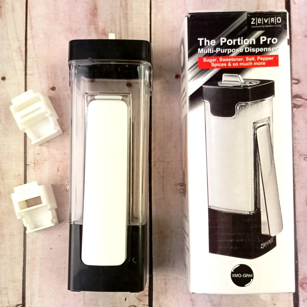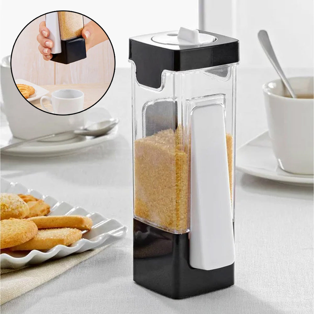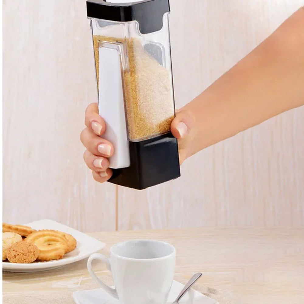 يمكنك أيضًا صبّ السكر أو التوابل الأخرى ورشّها من أعلى الموزع. موزع لحفظ السكر أو التوابل الأخرى بسهولة في متناول اليد. آلية لتوزيع كميات محددة - اختر ربع ملعقة صغيرة أو نصف ملعقة صغيرة أو ملعقة صغيرة واحدة. يمنع الرطوبة والهواء