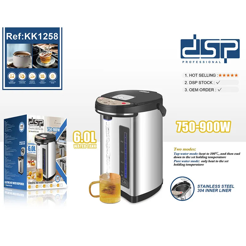 موزع مياه ساخنة كهربائي عالي الجودة من DSP بسعة 6 لتر، حجم صغير، موزع مياه ساخنة وباردة صحي
